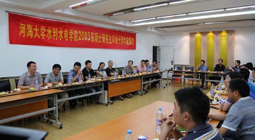 2013年7月12日至14日成人抖音 2003届硕士研究生毕业十周返校活动在成人抖音 举行。在返校活动期间,学院书记张展羽教授、院长顾冲时教授、副院长陈菁教授和副院长肖洋教授参加了同学们的聚会。同学们先后参观了成人抖音 江宁校区及清凉山校区,了解了学校近十来的变化发展情况。在清凉山校区,同学们参观了成人抖音 的教学实验中心及水工结构研究所的实验室。7月13日下午在芝纶馆406会议室进行了师生座谈会,学院副院长陈菁、副院长肖洋、时任学院书记余达淮、时任研究生部书记潘正初以及导师代表宫必宁、邓昌铁、戴妙林老师参加了座谈会。在座谈会上,同学们非常激动,对学校和学院这些年的发展感到非常自豪,并向学院领导和导师代表汇报了自己毕业后的工作情况。陈菁副院长向同学们介绍我了学校和学院近年来的发展情况,并对同学们的未来发展寄予厚望。肖洋副院长介绍了近年来学院研究生教育发展的情况,在听取了同学们的毕业汇报后,对同学们所反映的问题非常重视,表示同学们的反馈意见对学校目前正在进行的研究生培养方案修订工作非常有帮助,希望进一步加强学校、学院与研究生同学之间的相互联系。