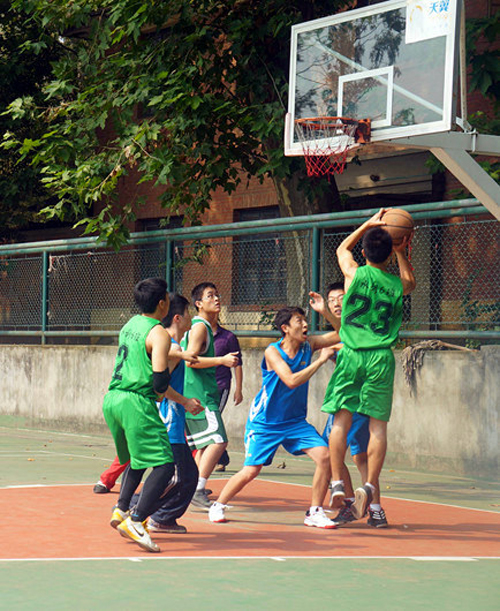 比赛采用小组赛的形式(分成四小组),每小组三队进行车轮战。随着裁判的一声哨响,比赛正式开始,3块比赛场地纷纷响起了震耳欲聋的加油声。不仅场上比赛紧张激烈,场下观众也表现出了高度的热情,每当有3分投中总能引起场外观众的一片欢呼。每一个队员都拼劲全力去努力抢球,投球。经过一番激烈的角逐,最终11级2、3、4班以45:37的成绩险胜11级1、5、6班,13级7班以67:33的成绩战胜13级1、5班,13级6班以57:17的成绩战胜13级1、5班。虽然部分队伍输掉了这次比赛,但他们的队员纷纷表示自己虽败犹荣,在接下来的比赛中更会拼尽全力。