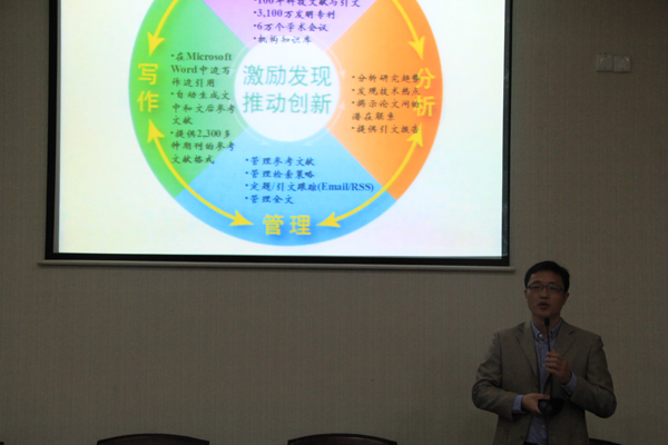 讲座开始由数据库专员介绍科技论文写作的技巧,对NoteExpress软件在论文写作中的应用做了详细分析,随后是各院优秀硕博士生分享自己论文写作的经验。水电院2011级博士生戴凌全用自己的经验就Endnote在文献管理和论文写作中的应用与大家分享;成人抖音
