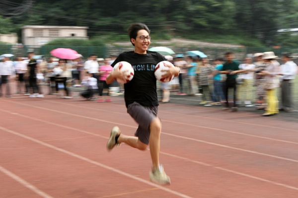 的比赛场地刚还在操场的东南角,没有一丝的遮挡,太阳直直地晒在大家伙的身上,阳光下,学院的老师们劲头十足,经过赛前的短暂练习后,首先进入跳绳比赛,虽然中间有掉链的现象,眼镜碰掉了,这都没有影响我们的比赛,还是取得了不错的成绩。精彩的是抱球跑比赛,我们是老中青结合的男同胞上阵,充分发挥个人的特长,不到一分钟的时间,就结束了比赛,成绩遥遥领先。接下来套呼啦圈接力的比赛,我们派出了清一色的女将出马,瘦小灵活占了优势,又取得了好成绩,最后的踢球接力,虽然两位运动员摔倒,但没有影响成绩,最终我们取得了校趣味运动会的一等奖。其实趣味运动会,最大的意义就是乐趣,2人三足接力,比的是2人的协调和配合,一个项目比赛结束,又一个项目比赛结束,还没上场的老师着急地直嚷嚷,可见大家都乐在其中了。
