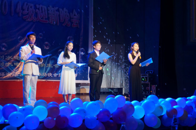 在speechless乐队的动感歌曲《creep》中,迎新晚会正式拉开了帷幕。学院老师的舞蹈《化蝶》优雅灵动,歌曲串烧、爵士舞、舞蹈《咏春》洋溢着青春的活力,国防生的大合唱《弹起我心爱的土琵琶》充满力量与激情,洪特鹏的一曲《疼爱》让新生们领略了校园明星的风采。藏族舞蹈《扎西德勒》、冬不拉弹唱、B-BOX口技秀、诗朗诵《如果在河海拥有爱情》等精彩的表演与绚丽闪耀的灯光相结合给观众呈现了精彩的视觉盛宴,迎新晚会在舞台剧《筑梦青春》中落下帷幕。晚会现场座无虚席,气氛欢快热烈。本场晚会给观众带来了无数的欢乐,更给每一个在场的新生留下了深刻的印象,让他们感受到了一个温馨并且充满无数惊喜的水电院。
