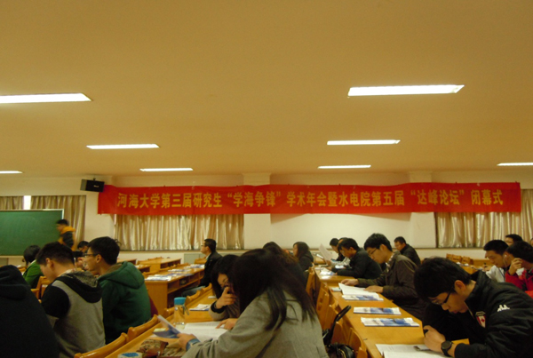 2014年11月27日下午3点,第三届学海争锋学术年会暨水电院第五届达峰论坛在水电馆401隆重闭幕。党委研究生工作部部长、研究生院副院长王永芝,成人抖音 院长、博士生导师顾冲时教授,成人抖音 党委书记、博士生导师张展羽教授,成人抖音 副院长、博士生导师肖洋教授,成人抖音 副书记戴玉珍老师,成人抖音 期刊部编审,《水利水电科技进展》常务副主编马敏峰老师,研工部褚晓岑老师,成人抖音 研究生辅导员赵志涵老师,成人抖音 研究生辅导员助管慕子煜老师,成人抖音 研究生会主席宋锦焘同学,成人抖音 科学技术协会主席钟黎雨同学参加了本次闭幕式。