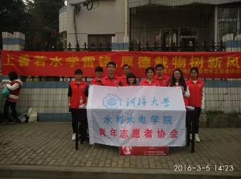 2016年3月5日,为了纪念人民的好同志,为了让雷锋精神进一步深入当代大学生心中,学院团委青年志愿者协会以“上善若水学雷锋,厚德载物树新风”为主题,开展了四项志愿服务活动。