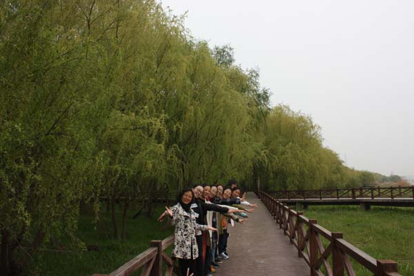 3月29日中午,忙完了上午教学(务)任务的女教工们,在约定的时间来到鱼嘴公园,宁静的公园因我们的到来而热闹,大家下车就迫不急待的拿出手机拍照,看到盛开的海棠,兴奋的驻足拍张留影,看到垂柳招呼来张合影,还摆出各种姿势,两边的柳树散发出淡淡清香,满地是绿油油的青草,沁人心脾。这边走边聊天的走路,轻松又愉快,时间很快就在漫步中过去了。(陶艳芝)