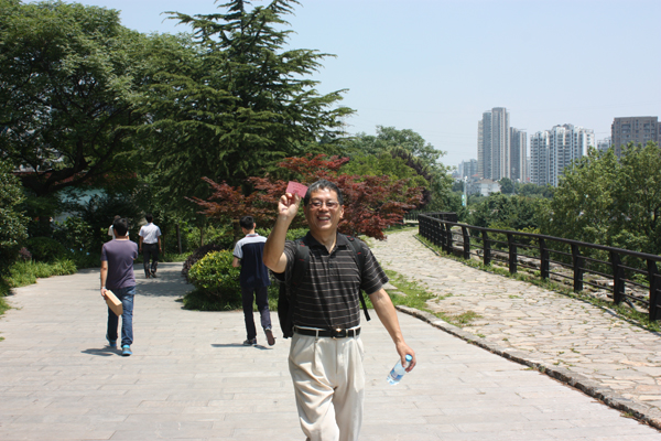 宫老师知道工会今天举行健康走活动,特别高兴,早早做了准备,到教工食堂吃完午饭,休息一会就来到集合现场,身背双肩包、脚蹬旅游鞋,一副远足的架势。