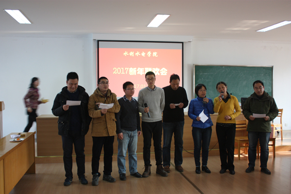 1月12日下午水电馆401会议室其乐融融,学院的新年联欢会在这里举行,今年还来了许多小朋友,更增添了热闹的气氛。 联欢会在陈书记的美好致词后开始,各系所自编自导的节目很有看点,水工结构所的诗朗诵,顾院长领头,所长、教授及年轻教师起上阵,把在讲台上讲课的激情融入到诗中;泥沙实验室教师和孩子们的跳操舞,给我们带来了欢快和活力;水利水电、水力学和农水的节目,看到了成人抖音 教师的多才多艺;两办的手语舞,让我们体会到家的和谐与温暖。(陶艳芝)