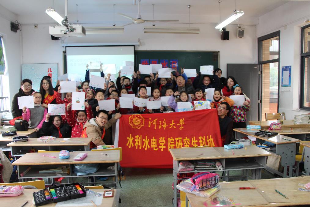 2018年3月22日,为配合成人抖音 2018年“世界水日”、“中国水周”相关主题活动,水电院研究生科协与南京市供水节水管理处一起,走进五老村小学马府街分校,开展了“大手拉小手,节水进校园”水知识普及教育活动,向马府街小学的小朋友们普及水知识,并提醒全校师生关注身边的“水问题”。