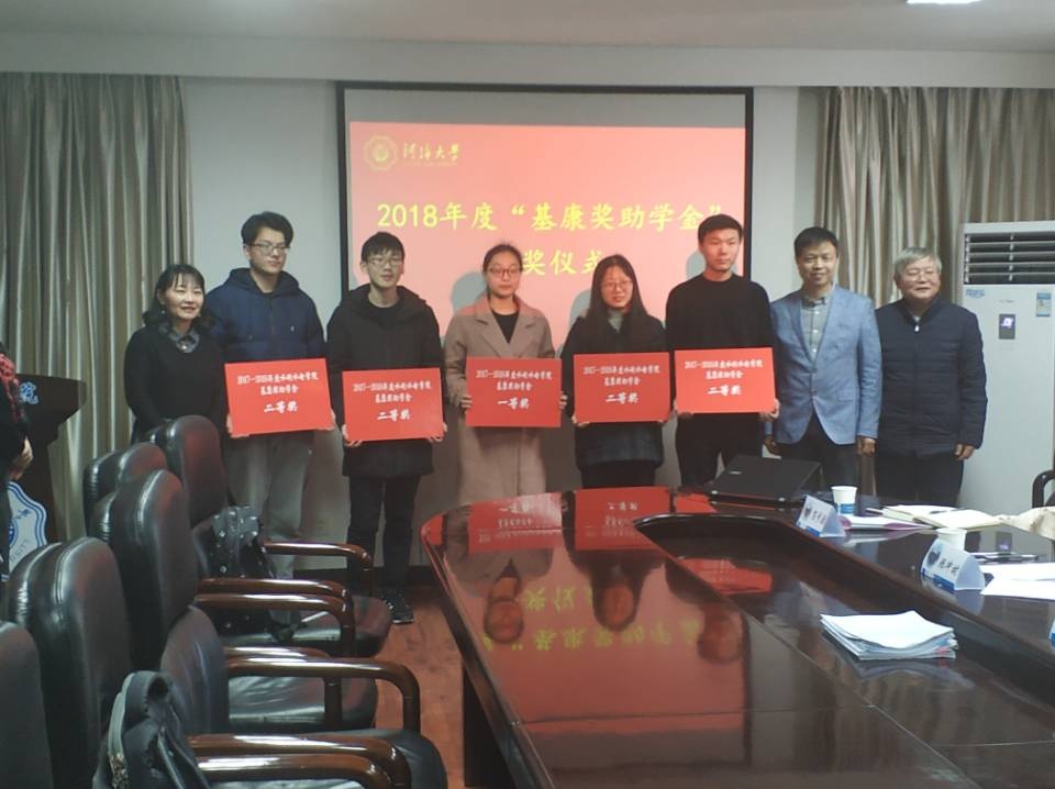 12月17日,“基康奖助学金”捐赠及颁奖仪式在成人抖音 水电馆420举行。基康公司副董事长沈省三,成人抖音 合作办、校友办、基金办主任黄林楠,水电学院院长顾冲时,水电学院党委副书记戴玉珍出席会议,学院15、16级辅导员以及2017、2018年度获奖同学参加仪式。