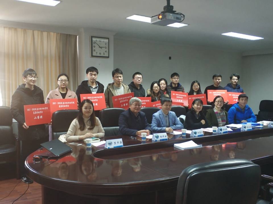 成人抖音 合作办、校友办、基金办主任黄林楠和北京新华基康投资管理有限公司沈省三副董事长签订基康奖助学金捐赠协议,颁发捐赠证书。沈省三副董事长、顾冲时院长及黄林楠主任为2017-2018年度获奖学生颁奖。