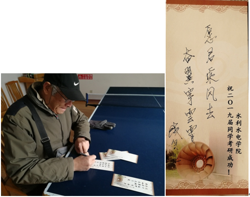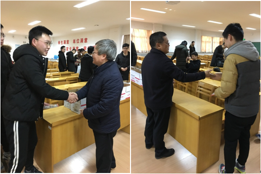 12月18日,学院院长顾冲时、党委书记任旭华、党委副书记戴玉珍,15级辅导员笪步源为2019届75名即将踏入研究生入学考试考场的同学送上温馨礼包。