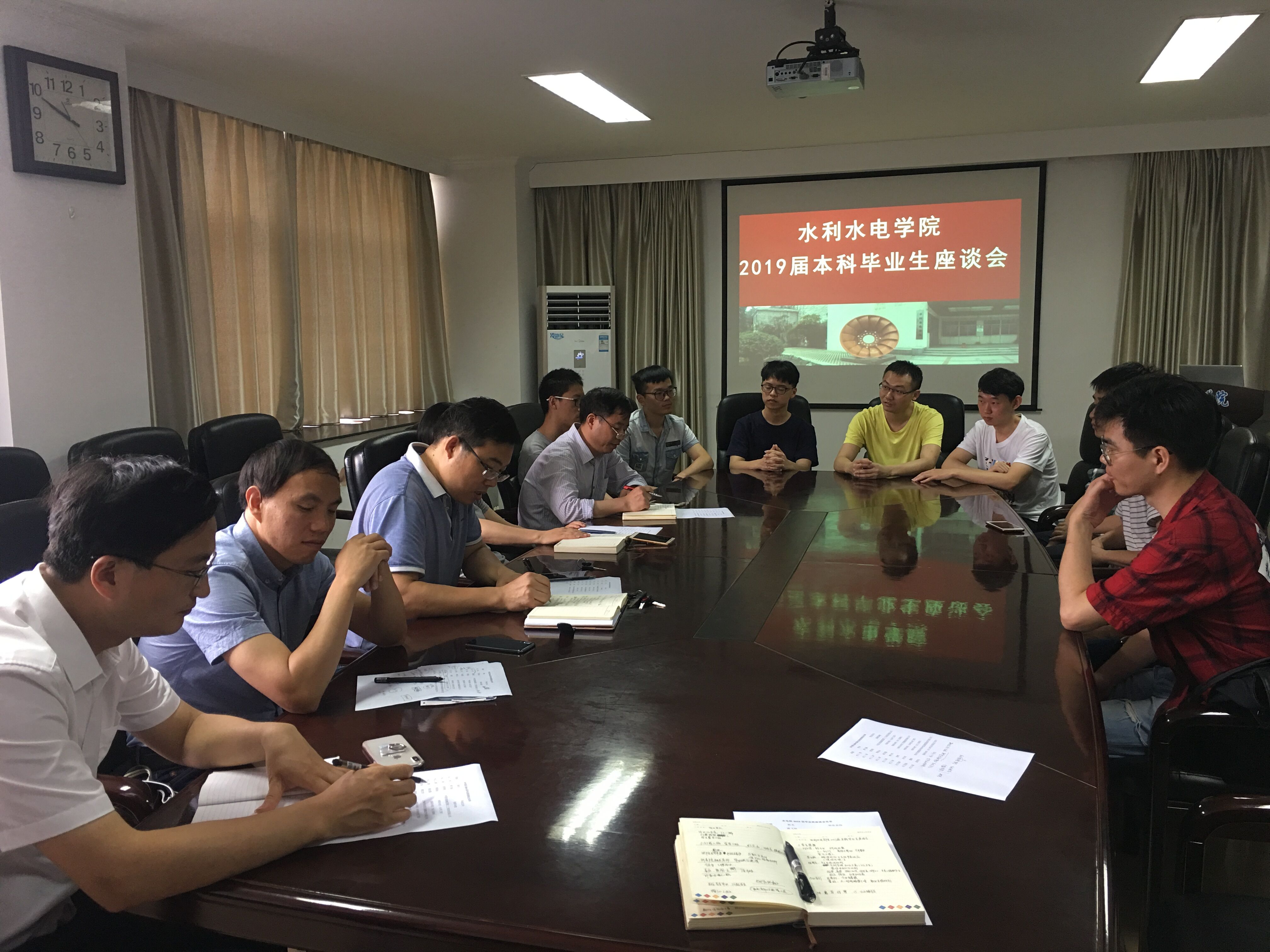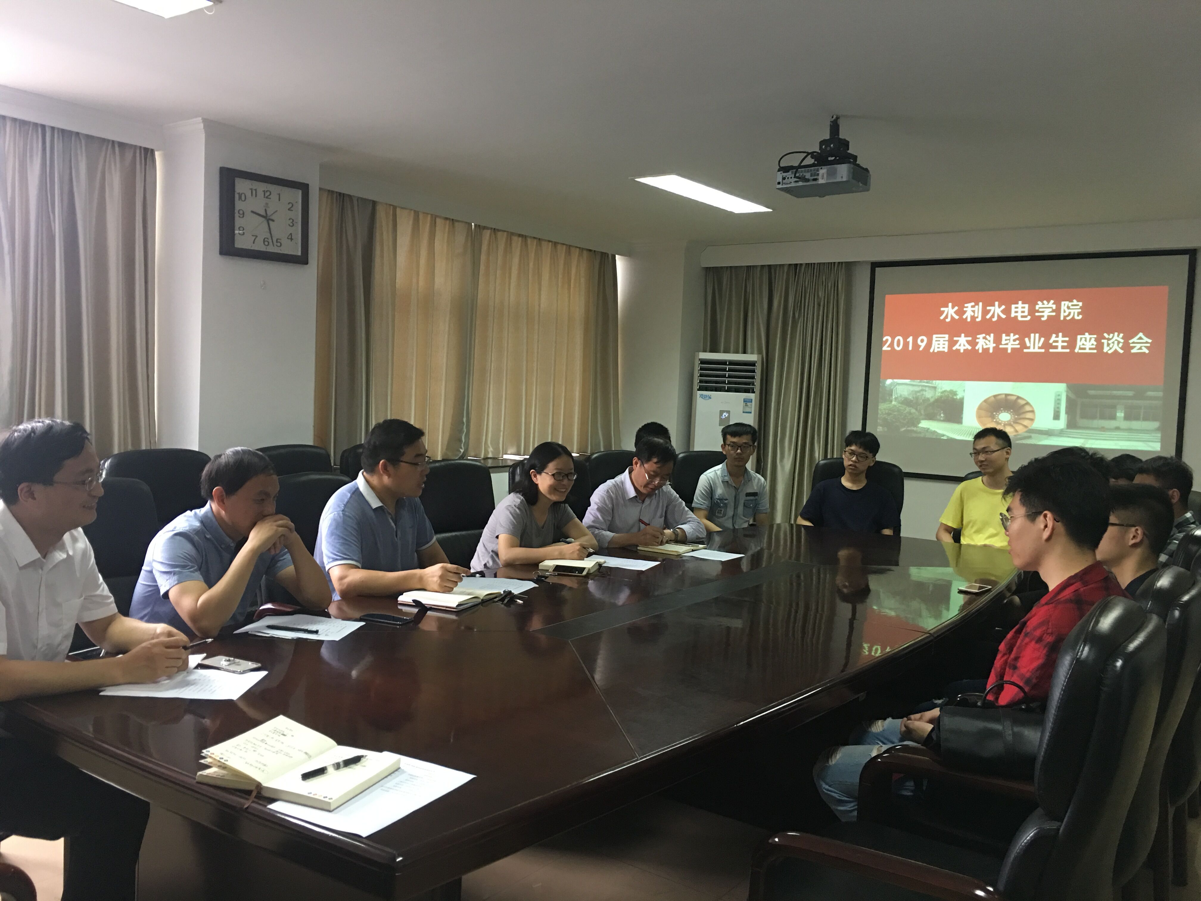 6月18日,成人抖音 举行2019届本科毕业生代表座谈会。会议由学院党委副书记戴玉珍主持,学院副院长张继勋、水电系主任蔡付林、副主任岑威钧、专业办主任徐磊,15、16级辅导员和2019届本科毕业生代表参会。
