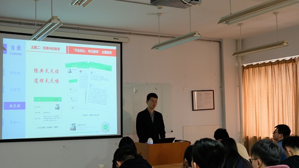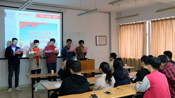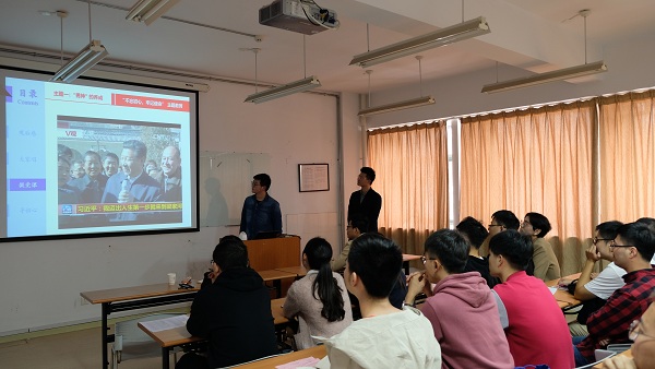 接下来,三位同学用讲党课的形式,从《习近平的七年知青岁月》读后感、经典与初心、模范与善行的角度出发,阐述了他们对于初心与使命的理解。接着支委会成员通过重温《入党申请书》,寻找个人“初心”,回顾思想变化,表示要继续坚定政治信仰,不忘初心。