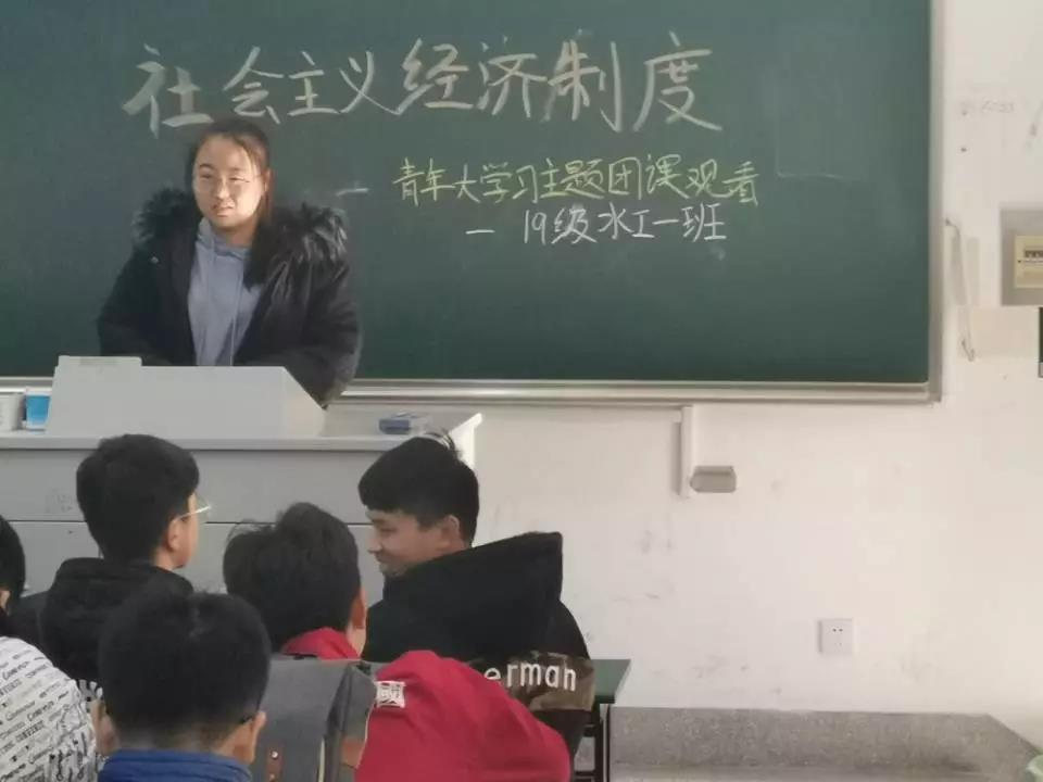 耿渏同学则进一步结合时代背景,用社会中的真实事例向同学们说明中国特色社会主义下经济制度带给国家、社会以及个人的利处。在思想的碰撞中,水工一班的同学更清晰地认识到了中国特色社会主义及社会主义经济制度的重要性。