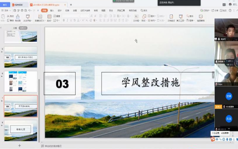 在班级学风整改方案阶段,全年级通过“番茄To Do”软件进行线上晚自习,1班设立一对多建立学习群,2班开设英语电台每天分享英语四六级摘抄,3班开展一对一线上答疑,4班组建学习小组,5班要求单词打卡及心灵短句分享等等。经过近2周的坚持,很多措施已初见成效。