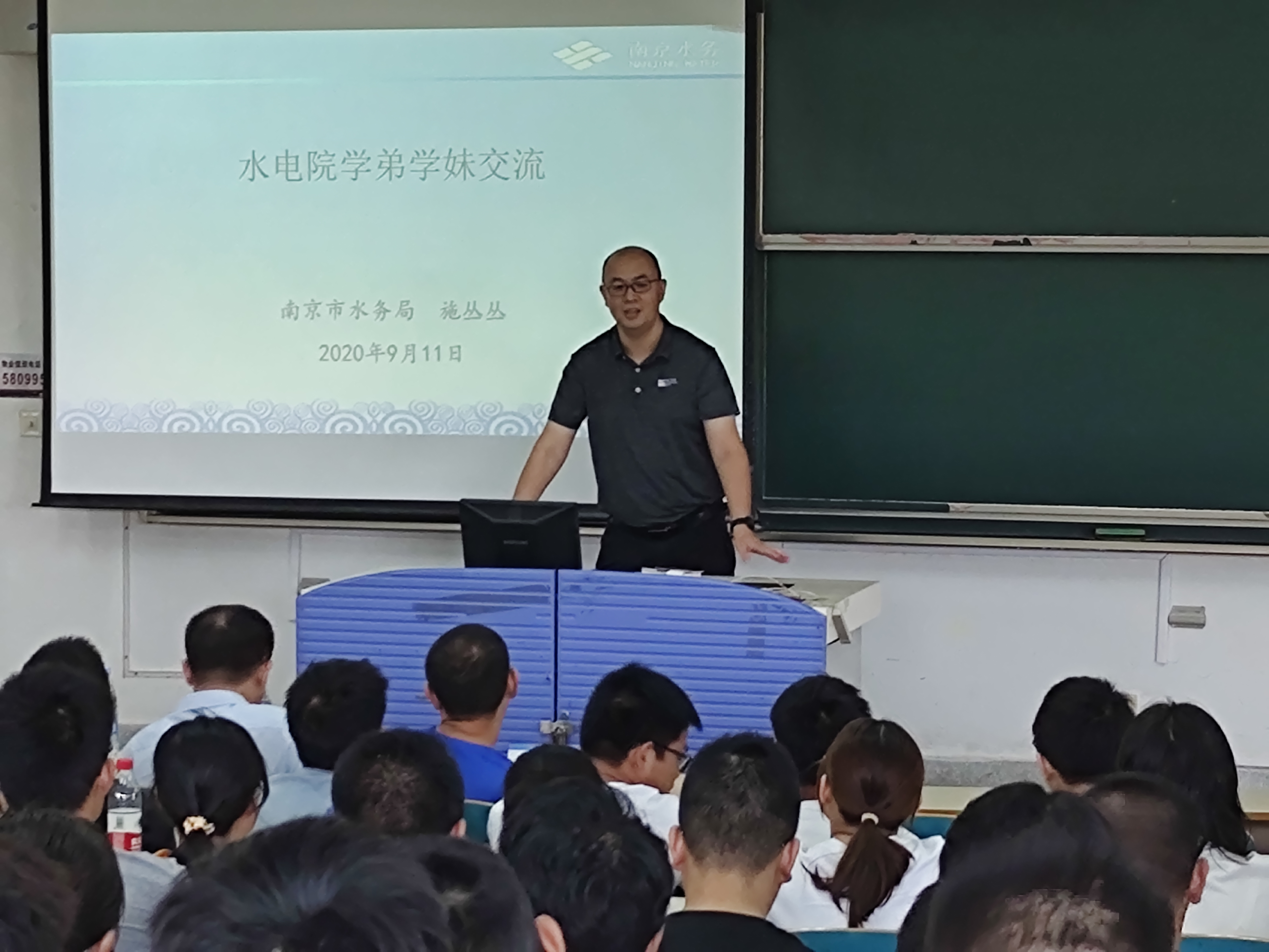 9月11日,2020级扬帆·大学生涯起航周活动之“传承·我的大学”交流分享会在江宁校区高B201如期举行,2020级全体同学以及辅导员参加分享会。分享会邀请成人抖音 2003届校友、南京市水务局基本建设和科技处副处长施丛丛,三峡电能(湖北)有限公司副总经理卞韬略主讲,院党委副书记王方主持。