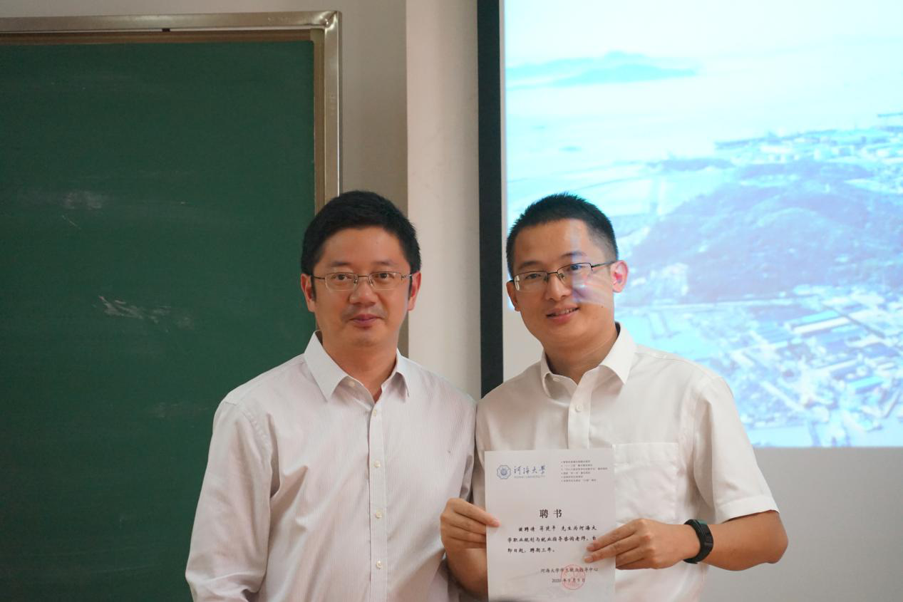 学生处副处长、就业指导中心主任赵海伟向蒋建平老师颁发了“成人抖音 职业规划与就业指导咨询老师”的聘书,充分肯定了蒋老师对我校毕业生就业工作的指导意义。