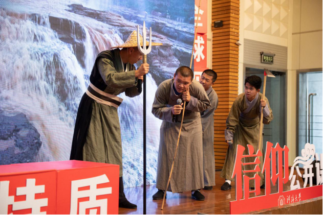 同学们以大禹三过家门而不入为蓝本,用话剧形式演绎大禹治水的艰辛过程,彰显民为邦本,公而忘私,创新求知的大禹精神。四位同学为我们带来“江河安澜——水利人在路上”诗朗诵表演。他们真挚的誓言中蕴含的是对河海的热爱,对成人抖音 的热爱以及将自己奉献给水利事业的坚定信念与决心。