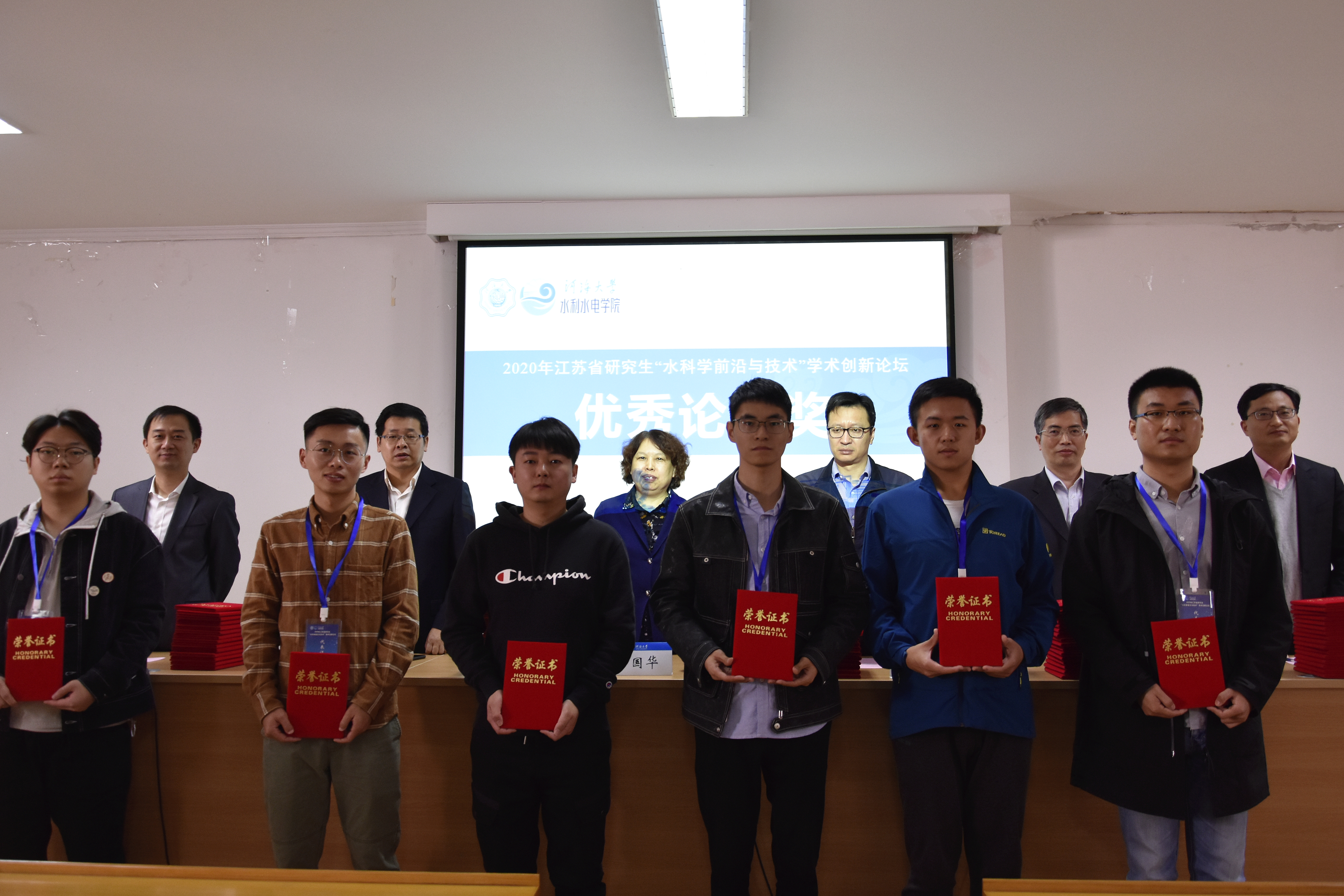 方国华副院长总结了本次论坛的各项活动和收获,向为本次论坛成功举办给予大力支持和帮助的各位领导、专家、老师和研究生同学表示感谢,希望参会人员积极保持和成人抖音 的学术交流与沟通,共同推动水科学领域科学研究与技术的创新发展。随后,与会领导和嘉宾为清华大学黄进、武汉大学赵勐、华中科技大学吕昊、郑州大学杨磊、南京水利科学研究院汪琳、成人抖音 张文兵等同学颁发了2020年江苏省研究生“水科学前沿与技术”学术创新论坛优秀报告奖、优秀论文奖、优秀海报奖等奖项。2020年江苏省研究生“水科学前沿与技术”学术创新论坛圆满闭幕。(文/周昶;图/陈效权、张宇、陈诚、蒋爱丽)