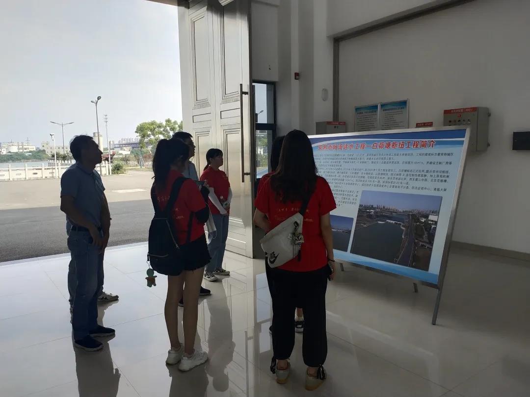 队员们在白茆塘枢纽工程进行参观