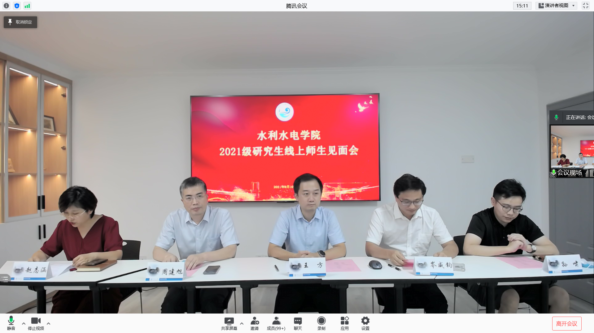 在2021级研究生新生见面会上,学院党委副书记王方、学院各研究所教师代表、学院研究生辅导员赵志涵及研究生会和各专业研究生代表出席会议,2021级全体研究生新生参会,研究生辅导员赵志涵主持会议。王方副书记强调,研究生阶段要严格要求自己,不断提高思想素质和科研素质能力,树立社会责任心与历史使命感,为水利事业发展贡献青春力量。在学科专业教育中,各系所教师代表就学科特色、师资力量、研究方向、科研条件和就业去向等方面介绍。辅导员召开2021级研究生年级大会。