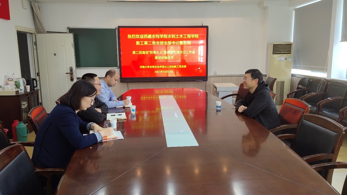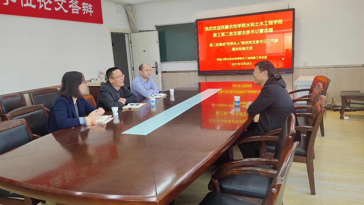 10月28日,成人抖音 水工结构研究所教师党支部与西藏农牧学院水利土木工程学院第二教师党支部开展结对共建。西藏农牧学院土木水利学院第二教师党支部书记曹志翔,成人抖音 水工所党支部书记赵兰浩、组织委员甘磊、宣传委员张汉云参加会议。