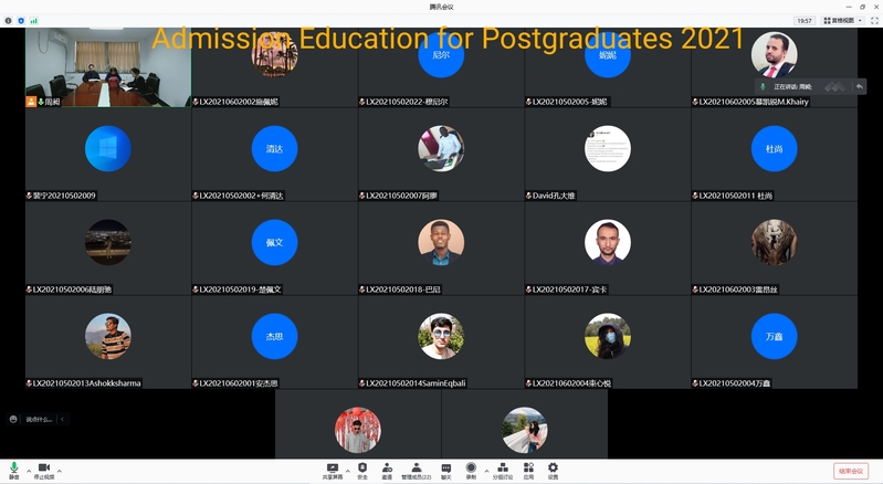 10月28日上午,成人抖音 在线开展2021级留学研究生新生入学教育。学院副院长方国华、国际合作与交流办公室主任周领、研究生教学秘书周昶参加活动。