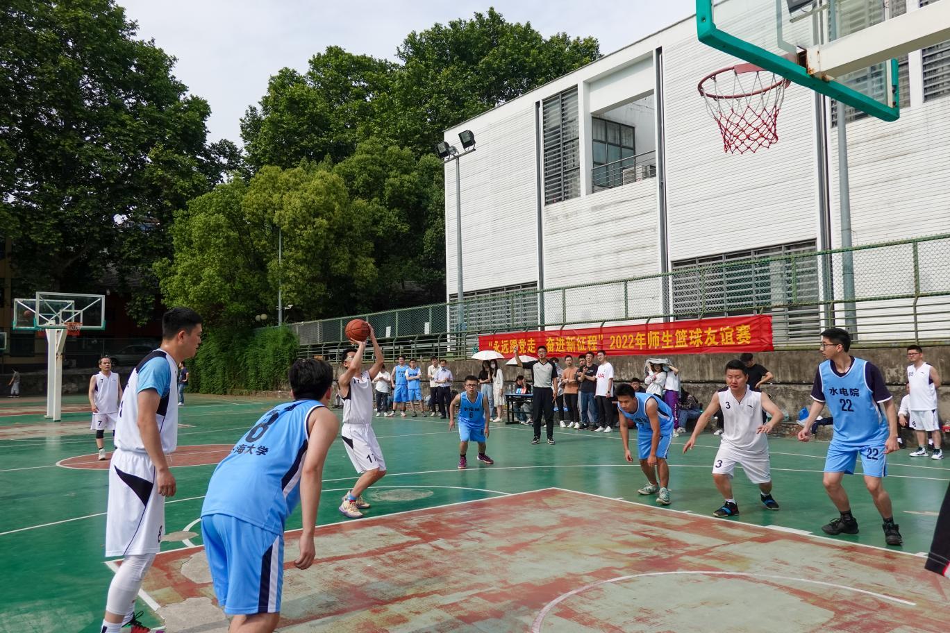 为更好发挥共建载体作用、增进师生交流互动,5月14日,水电院第一本科生党支部与共建教师支部——成人抖音 校办党支部,联合开展“永远跟党走,奋进新征程”师生篮球友谊赛。比赛在成人抖音 西康路校区篮球场举行。