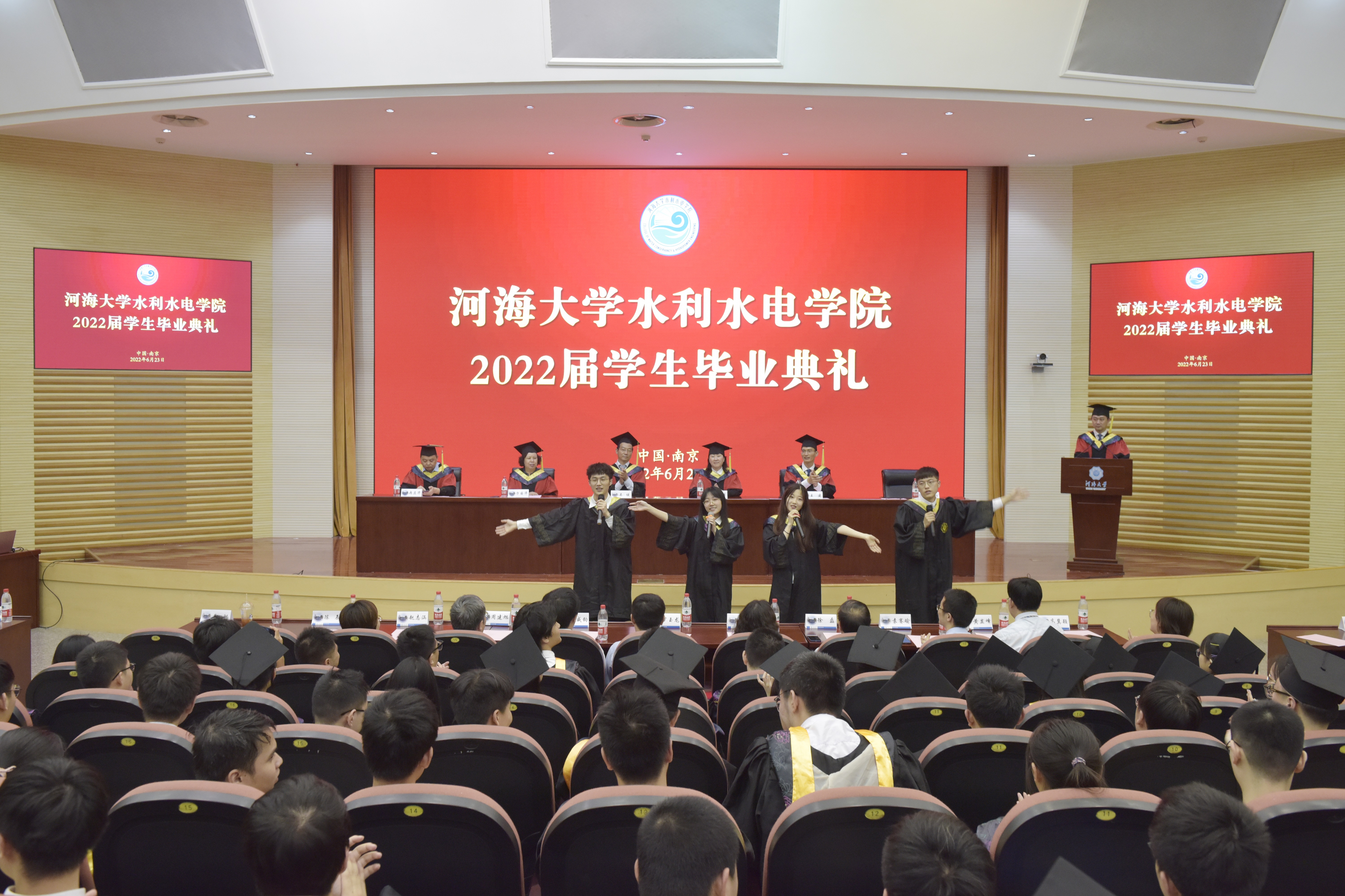 毕业典礼还增加了快闪表演,水电学子以青春的歌喉演唱青春旋律,现场气氛热烈、氛围十足,深受师生喜爱。