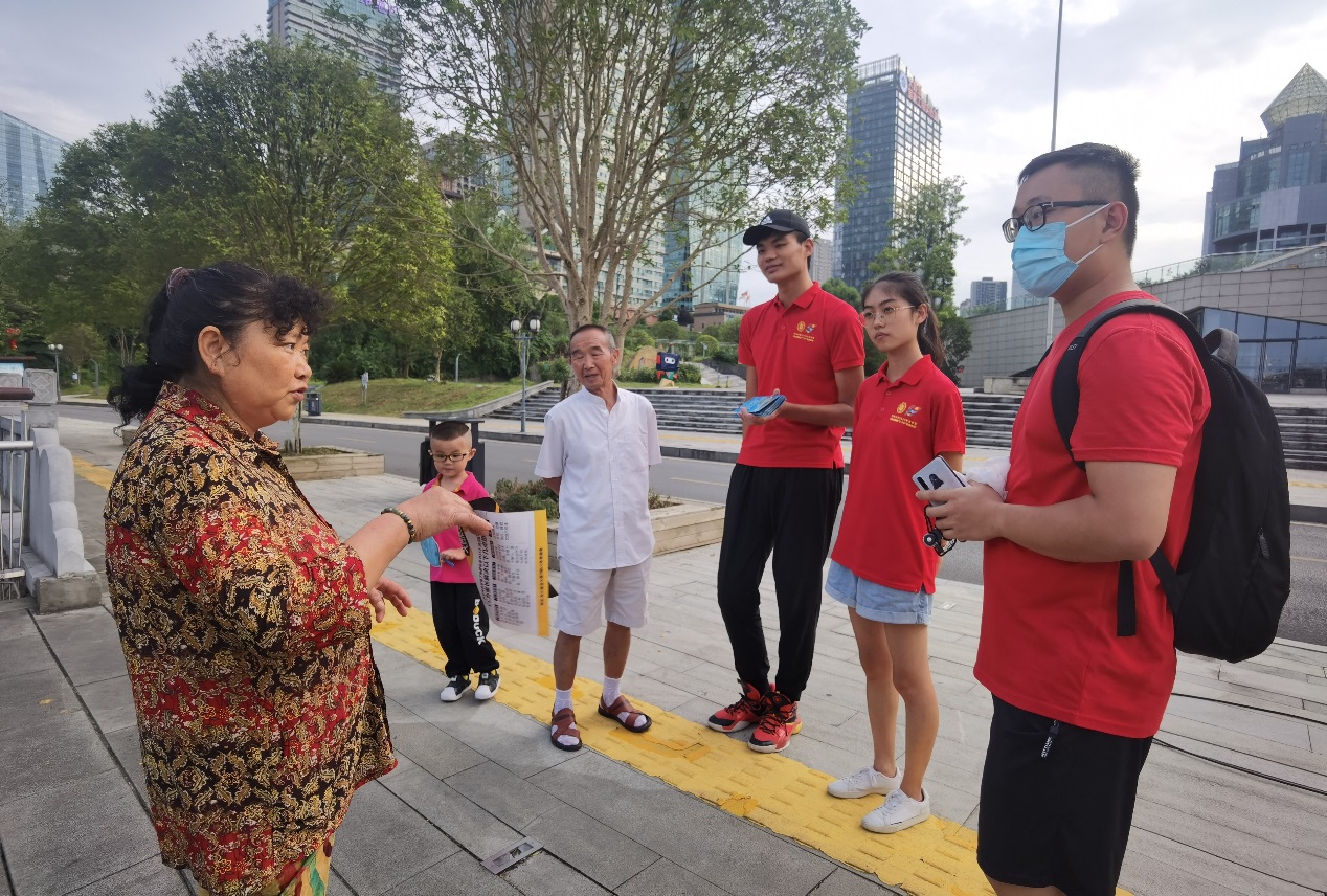 最后,实践团成员走上街头,拿起印刷的宣传册,向贵阳市白鹭湖畔的市民朋友们介绍当前堆石混凝土筑坝技术,让更多的市民朋友关注当前筑坝技术的发展,并且帮忙解答市民朋友们对于水利设施的疑问。
