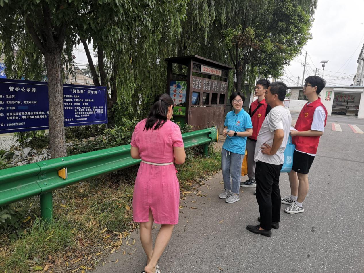 《2022年水利工程建设工作要点》中指出,要统筹推进农村中小河流治理、全面做好乡村振兴水利建设工作。为更好了解江苏省中北部农村河道的污水治理现状和河湖长制实施成效,实践团于7月19日至20日先后赴江苏省淮安市淮安区漕运镇沙口村、盐城市射阳县兴桥镇实地考察。在沙口村常书记的带领介绍下,实践团从河长公示牌设置情况、河长巡河情况、河流问题督办情况等方面了解了当地河长的工作日常,从水体整洁程度实地考察沙口村温沙河河流现状,对当地河长制实施成效进行了评估。