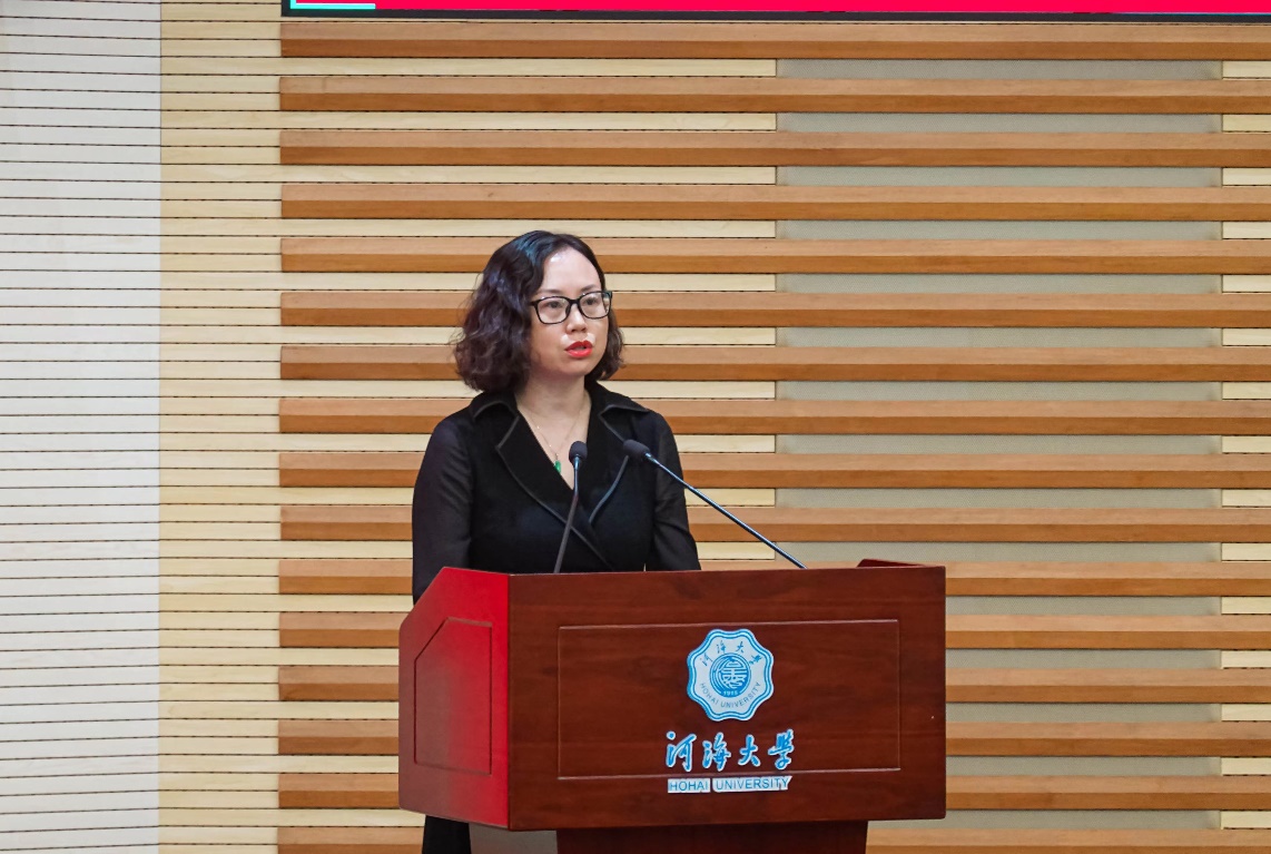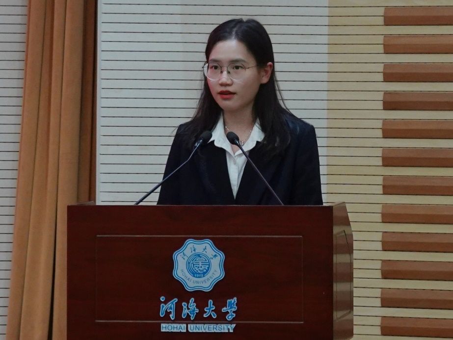 2022级硕士研究生傅睿婕作为新入学研究生代表发言。她表示要成为河海新一代有责任有担当的治水之人,用恒心、信心、决心,为我国的水利事业,为中华民族伟大复兴的中国梦,展现河海学子青春靓丽的风采。