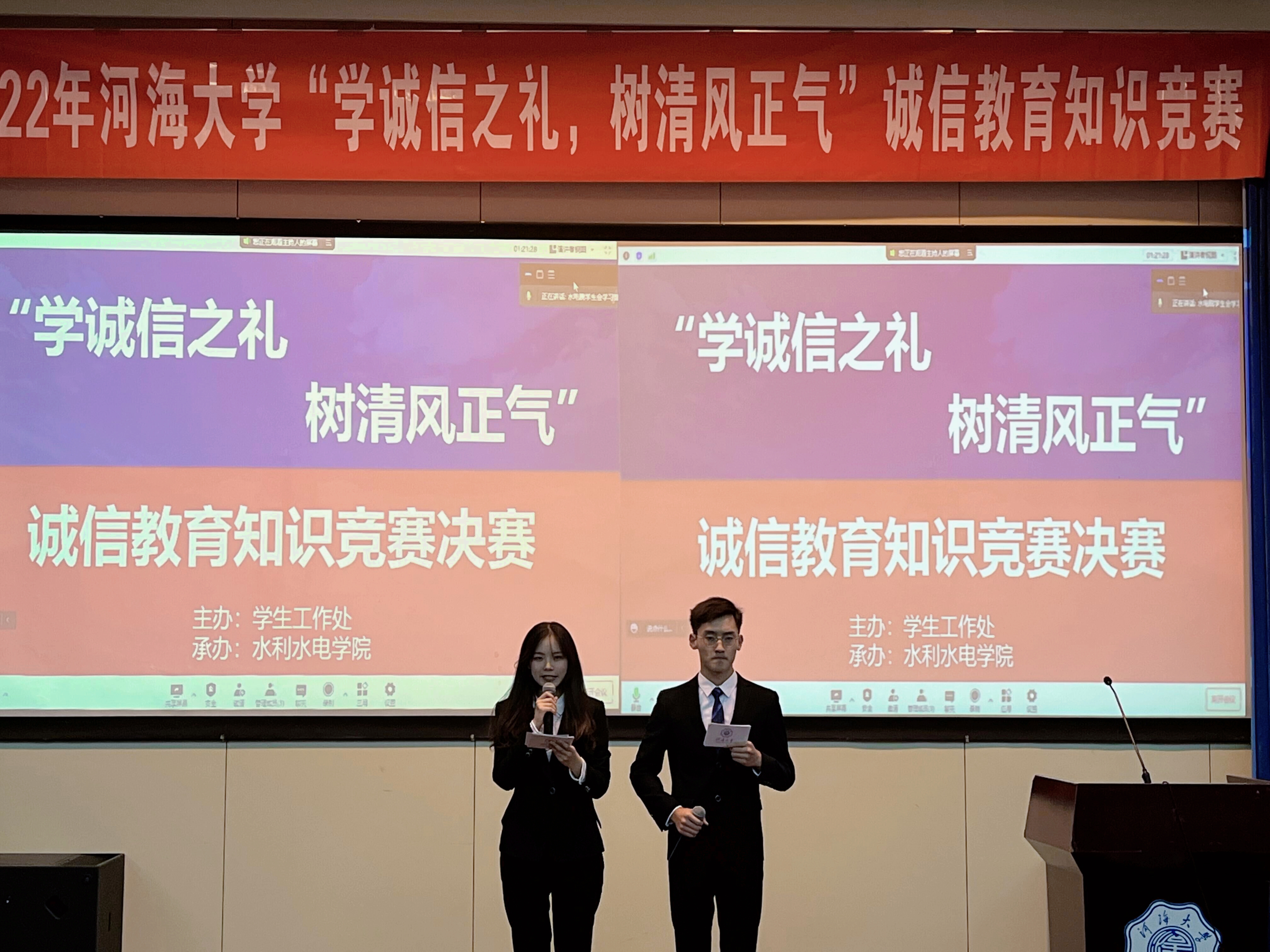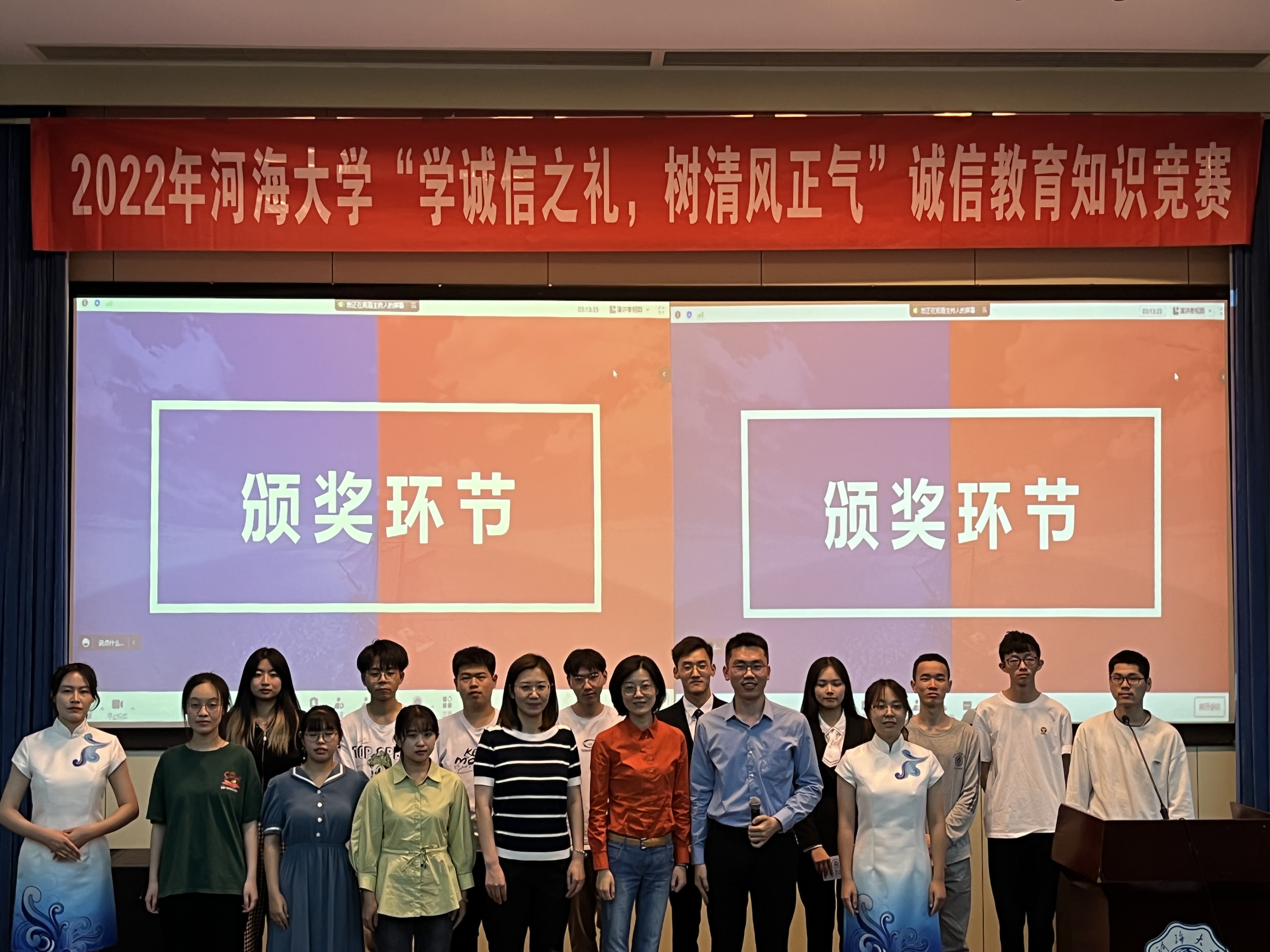 为营造诚信校园氛围,增强学生诚信意识和责任担当,结合学校“诚信·励志·感恩”主题教育月活动的相关安排,由校学生工作处主办、成人抖音 承办的“学诚信之礼,树清风正气”诚信教育知识竞赛决赛于江宁会议中心举办。本次活动邀请学生处资助管理中心祝婕老师、农业科学与工程学院团委书记薛璟老师、能源与电气学院2021级本科生辅导员于涵老师、成人抖音 2021级本科生辅导员侯开智老师担任评委,共有来自16个学院的180余名同学参加。
