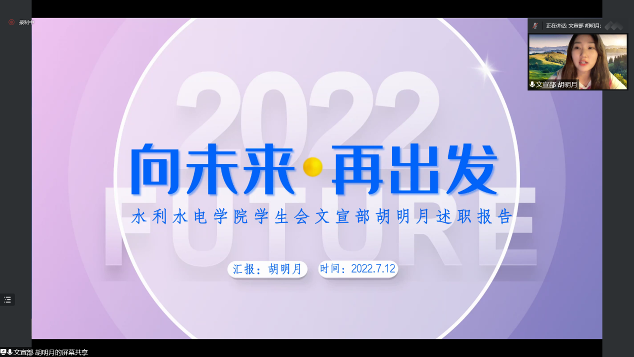 学习部任嘉欣同学介绍了学习部在“刻苦,严谨,求实,创新”的宗旨下开展的各类知识讲座和学习经验交流会,为水电学子们搭建了思想碰撞和学习交流的平台。