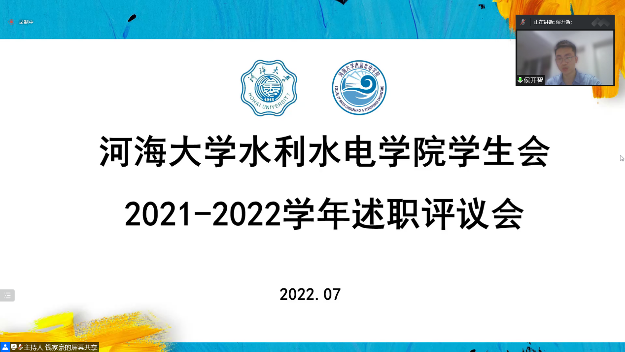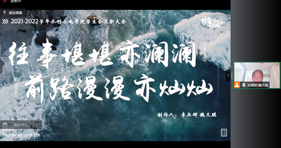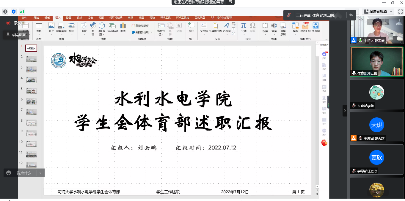7月12日19:00,我院学生会2021-2022学年第二学期述职评议大会借助网络平台线上举行。会议由成人抖音 学生会主席团成员钱家豪同学主持,成人抖音 2020级本科生辅导员梁培德老师、2021级本科生辅导员侯开智老师、学生会全体成员以及各班班长参与了本次评议。