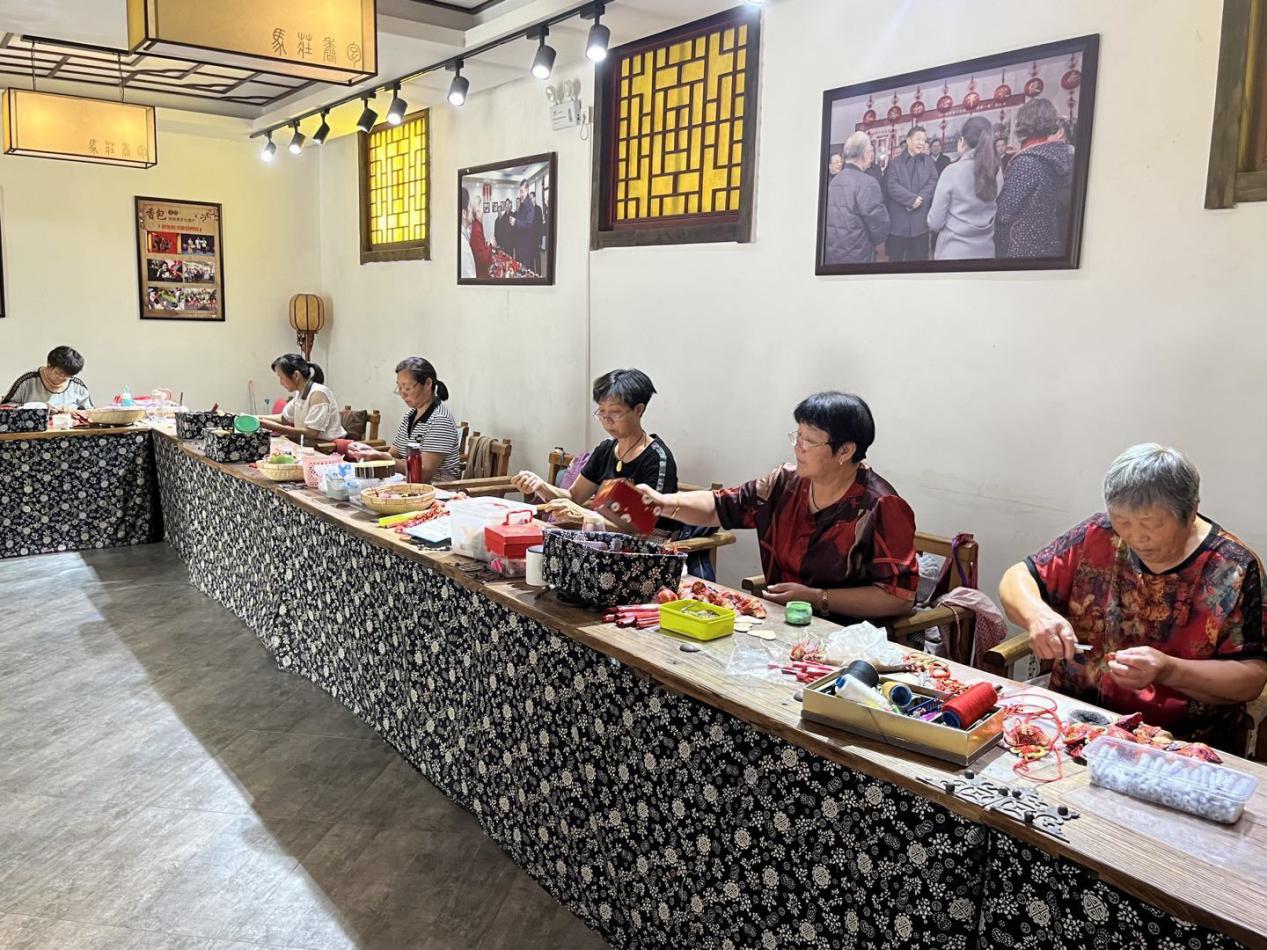 据工作人员介绍,香包大院除了王秀英老人的香包工作室,还有制作与售卖两处区域。在王秀英香包工作室,实践团采访现场手艺人,了解生产香包对乡村妇女的就业促进作用。