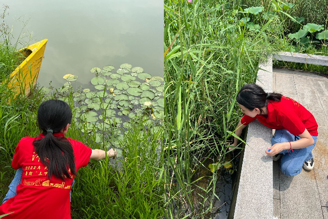 (实践团成员进行水质采样)