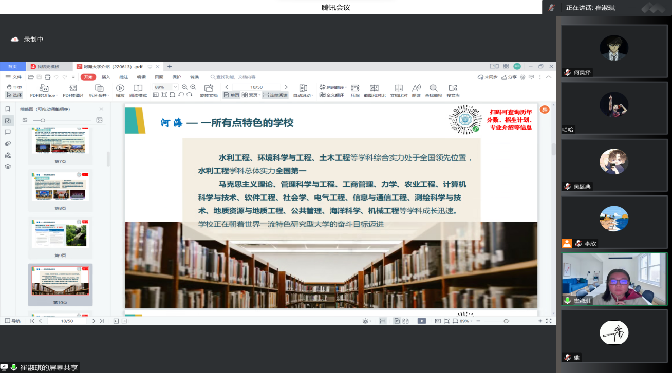 在海口市第一中学,实践团队在腾讯会议举行线上宣讲,为学弟学妹们的高考择校提供帮助。实践团成员提前演练,精心筹划,从校园文化、创新创业、学科特色、专业前景等多方面展现了成人抖音 的优势及特点,并向大家分享高考经验及大学生活,与同学们进行交流沟通、答疑解惑,为参会的同学们提供了优良的了解平台。本次宣讲激发了高三学子对大学生活的渴望与期待,也祝愿学弟学妹在新动力下不断前行,铸就辉煌!