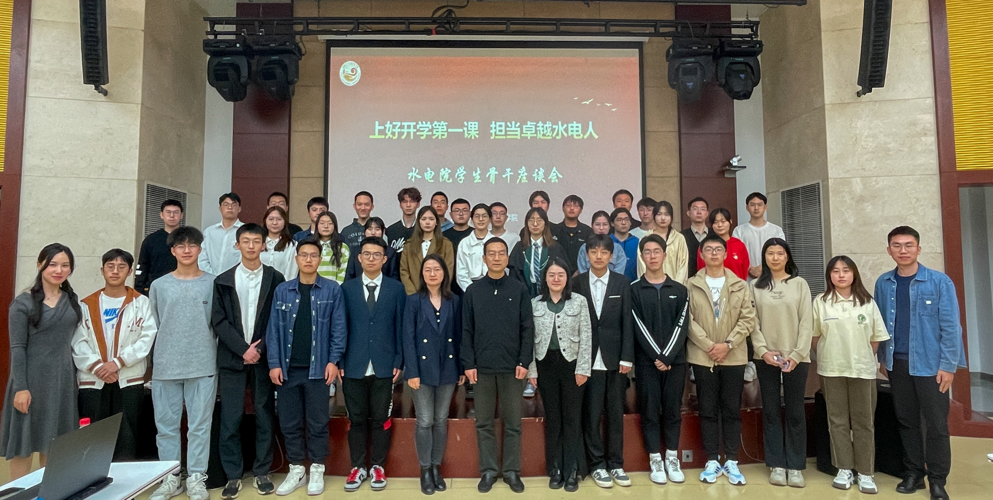开学第一课上,娄健为全体学生骨干讲介绍了学院过去一年的有关工作和未来展望,充分肯定了学生组织和学生骨干的工作成果。他强调,学院成立以来,一代代水电人艰苦奋斗、凝聚共识,汇聚起水电奋进力量,形成了独特的水电风骨,成就了学院高质量发展的成绩单。