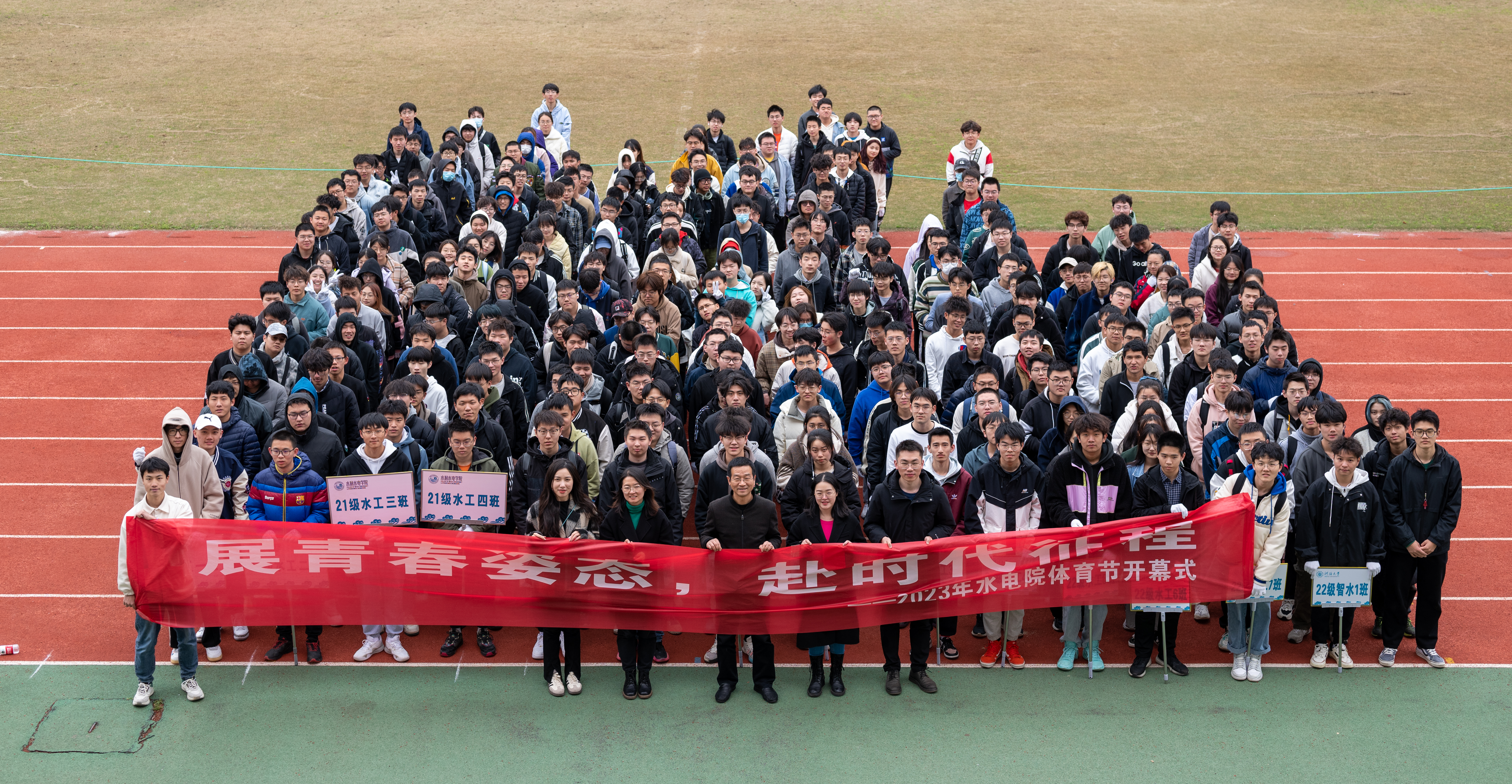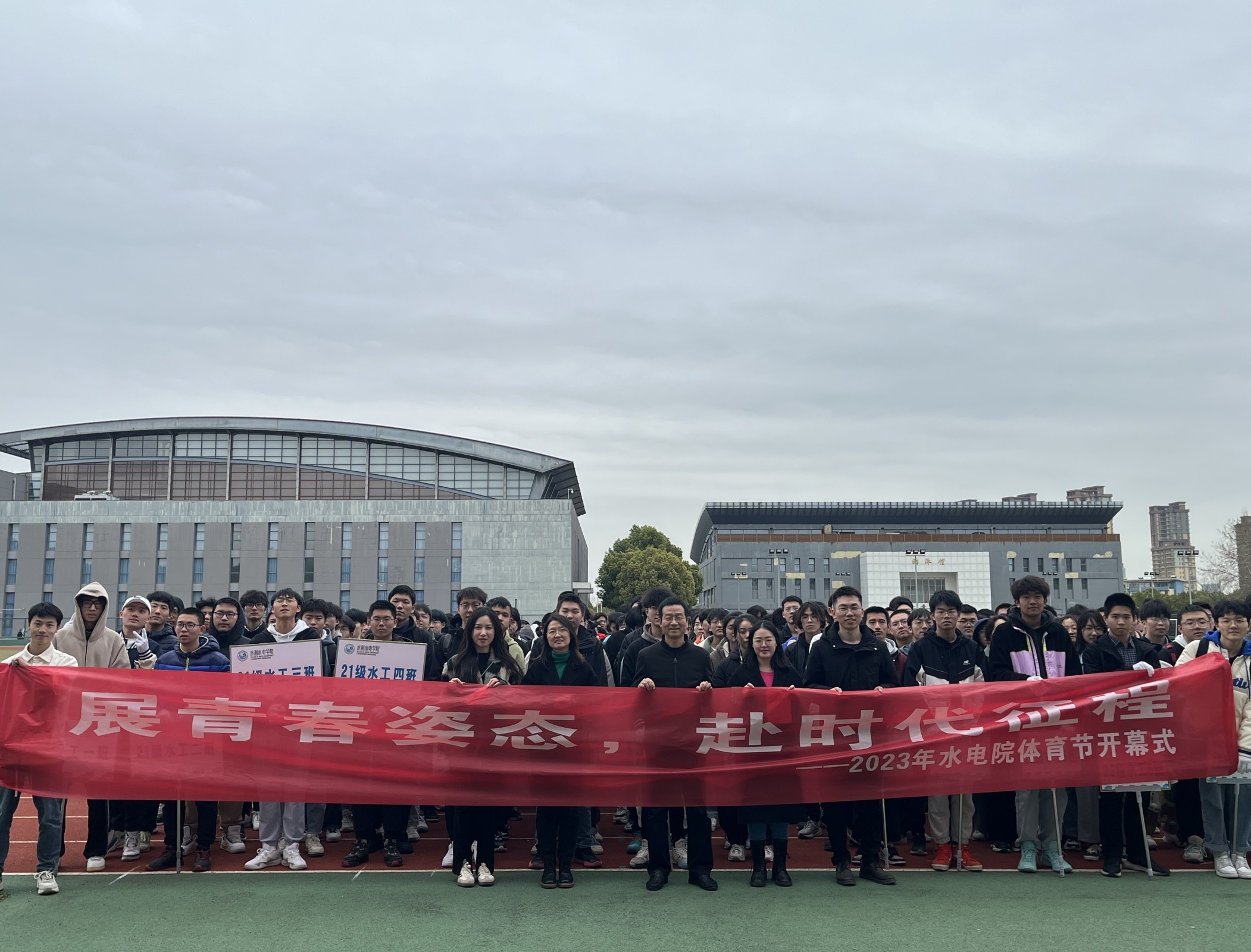 学生代表、2021级水工三班赵成龙宣读倡议,倡导全体水电学子以饱满的激情、昂扬的斗志、勇于拼搏的信念、团结向上的精神投入到赛事中,以实际行动“走下网络、走出宿舍、走向操场”,锻炼体质、磨练意志,尊重规则、沉着应战,赛出风格、赛出水平,展现水电学子的青春风采!