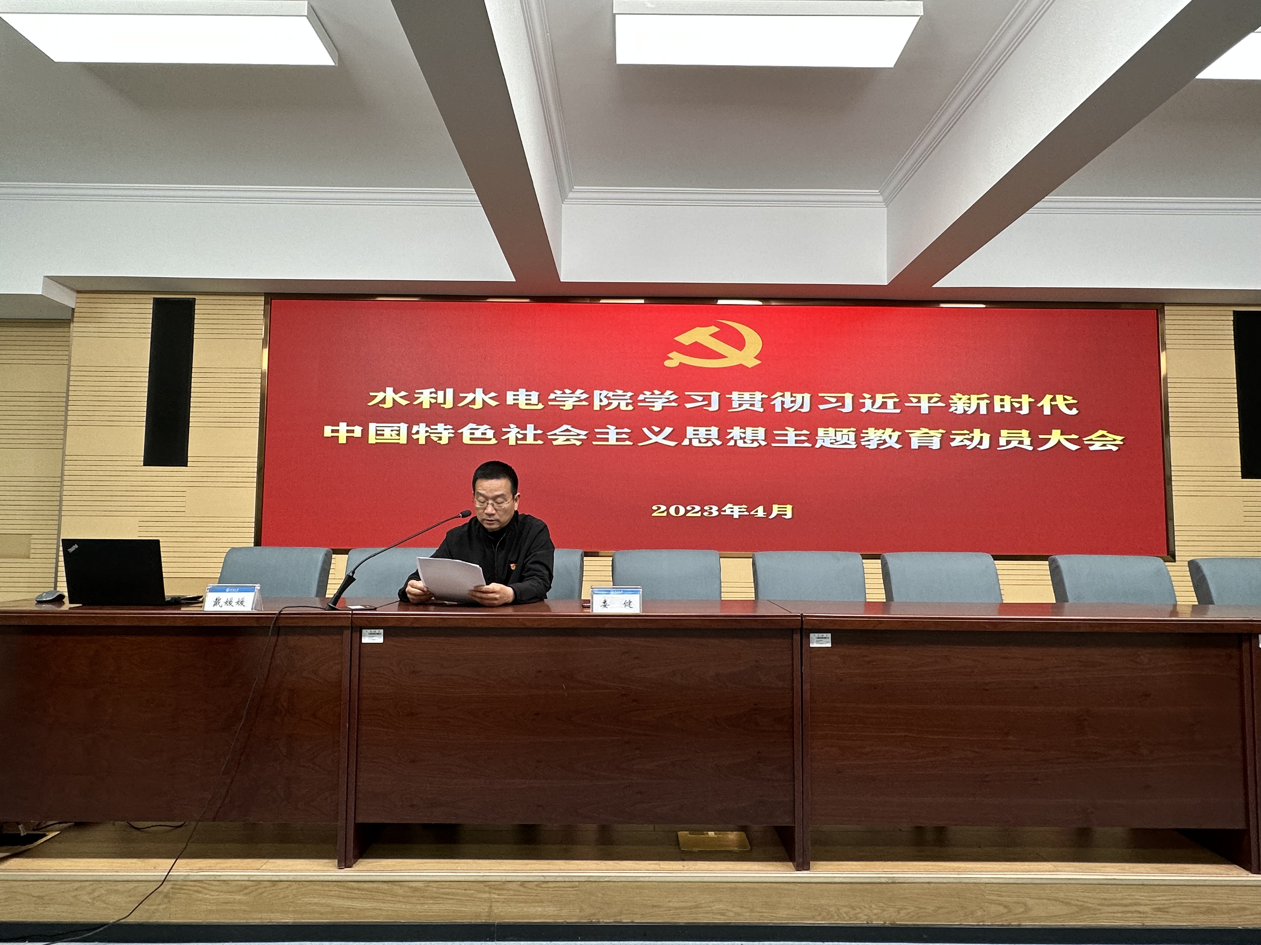 4月26日,为深入学习贯彻习近平总书记在主题教育工作会议上的重要讲话精神,全面落实党中央、教育部党组和学校党委关于主题教育开展的决策和部署,成人抖音 召开学习贯彻习近平新时代中国特色社会主义思想主题教育动员大会。学院党委书记娄健出席并作动员讲话。院党委副书记戴媛媛主持会议。