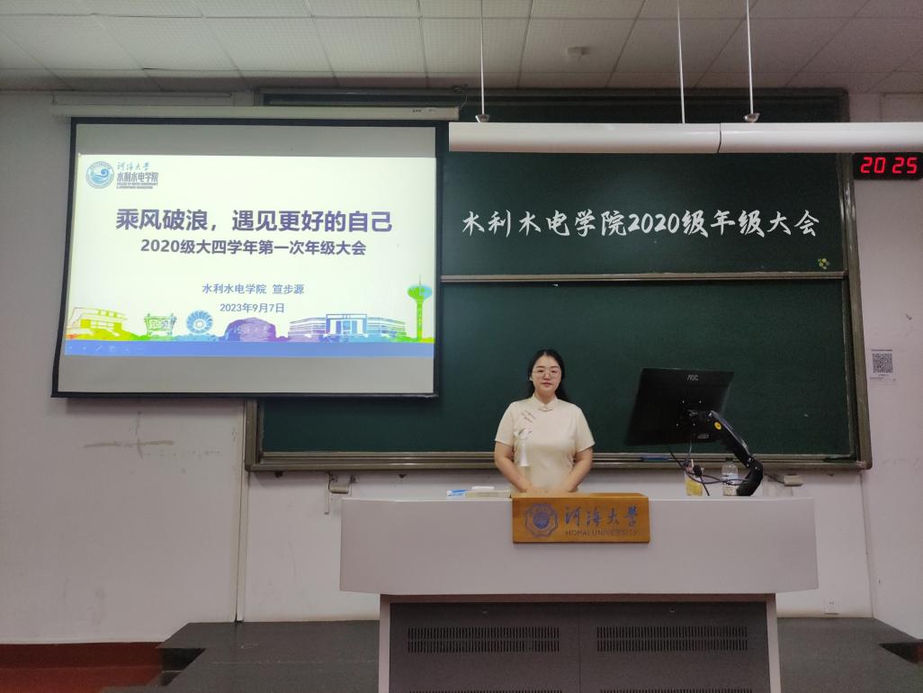 9月7日,为了帮助学生明晰毕业目标,完善生涯规划,成人抖音 2020级召开“乘风破浪,遇见更好的自己”年级大会。会议在水利馆201开展,2020级全体本科生参加,2020级本科生辅导员笪步源主持。