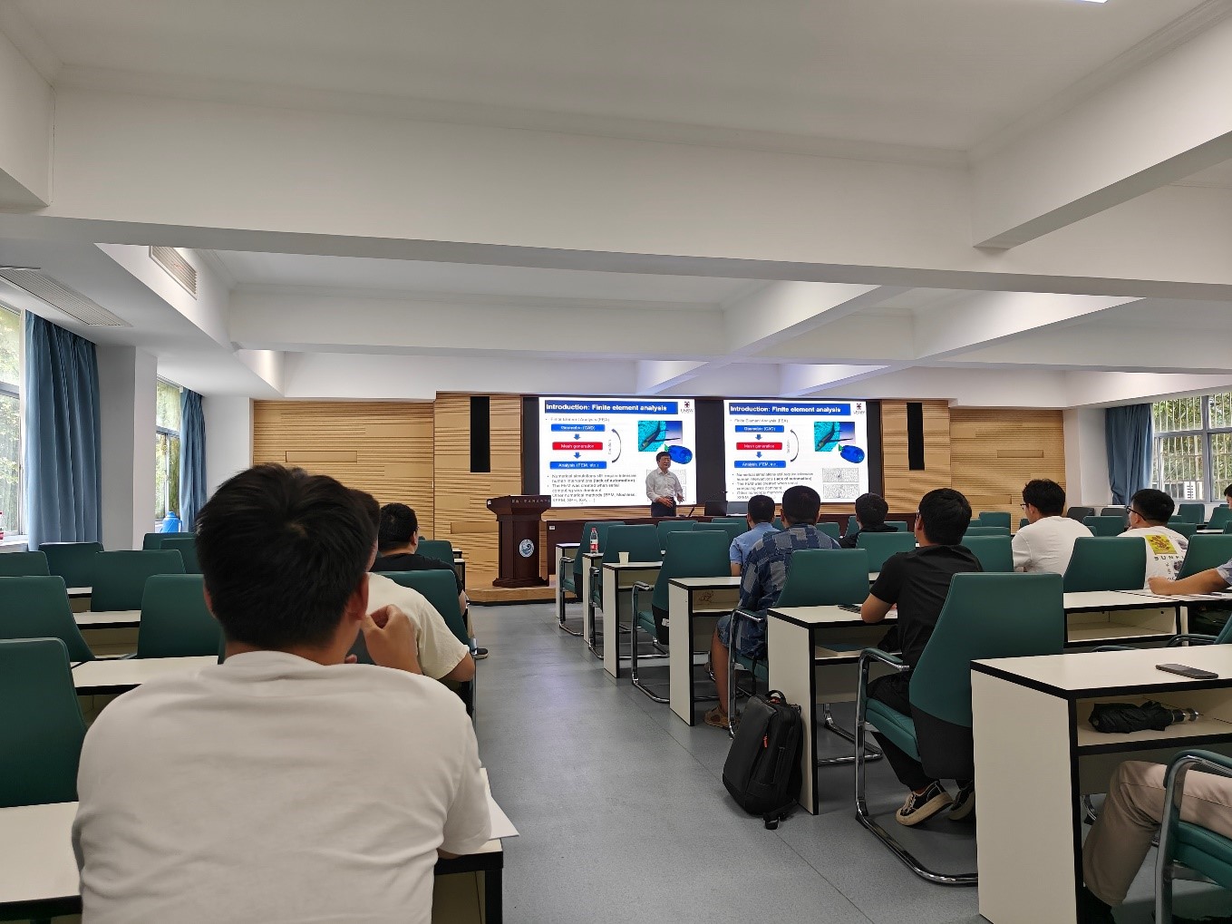 宋崇民教授进行了“比例边界有限元法:将几何模型与工程分析相结合”的学术报告。宋崇民教授现为澳大利亚新南威尔士大学土木与环境工程学院教授,结构工程与安全中心主任,是比例边界有限元方法的两位创始人之一,研究领域主要包括计算力学、土与结构的动力相互作用和断裂力学。报告中,他详细介绍了数字时代下计算力学的研究背景与目的、比例边界有限元法的基本理论、复杂工程结构的网格自动剖分技术以及高效数值计算等方面的最新研究进展,并现场演示了多个工程案例,对其中涉及到的关键科学问题做了深入浅出的分析和讲解。