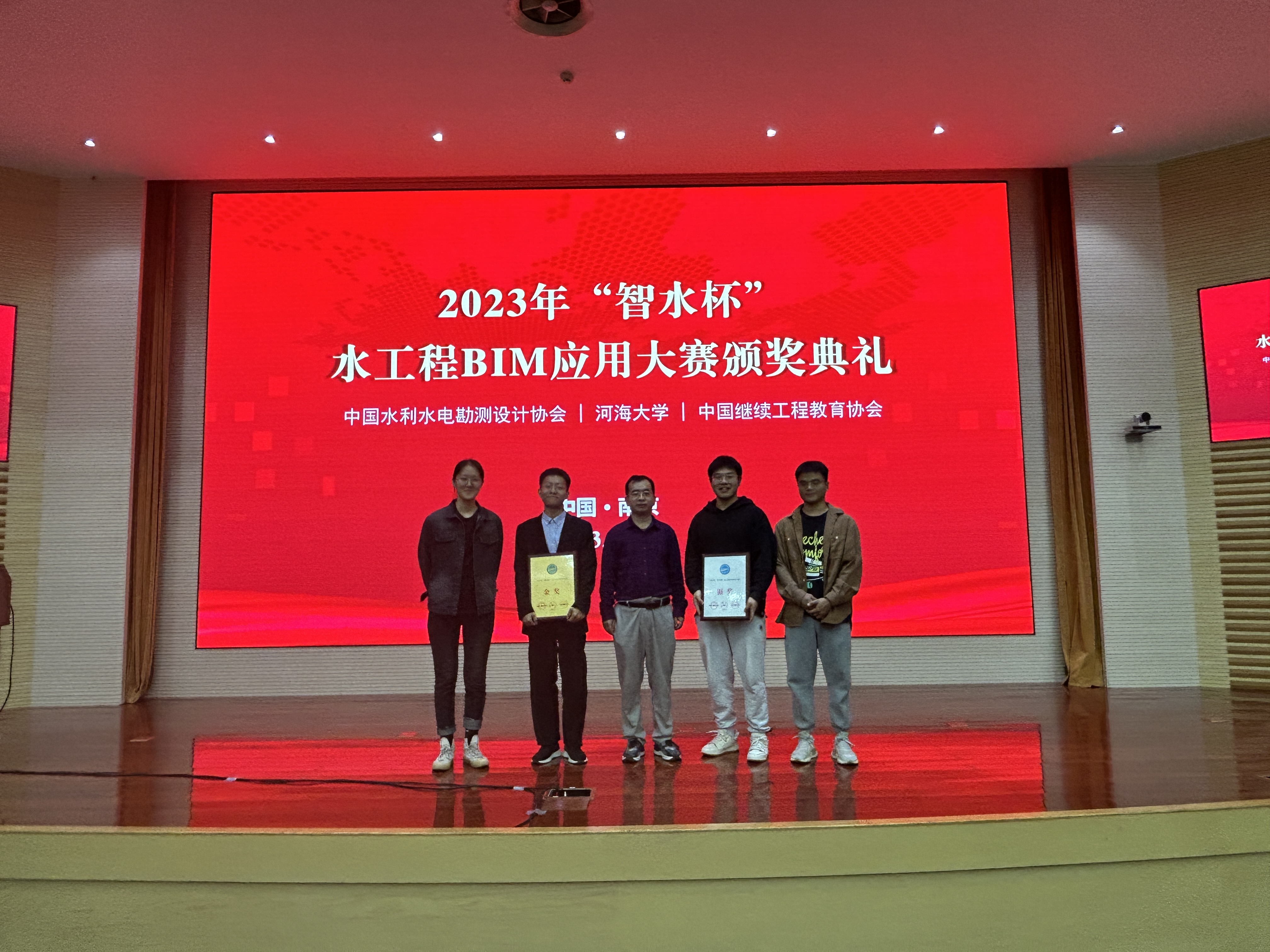 由中国水利水电勘测设计协会、成人抖音 、中国继续工程教育协会共同举办的“数字孪生水利高峰论坛暨 2023 年‘智水杯’水工程 BIM 应用大赛颁奖典礼”于2023年10月29日在成人抖音 召开。成人抖音 2021级研究生刘奕炜、左世杰、孔垂穗、陈铭轩、王宇阳、贾玉彤等同学共同完成的“基于BIM技术的沙河闸站三维可视化研究”项目获院校组金奖。该项目由牛志伟、齐慧君老师指导。