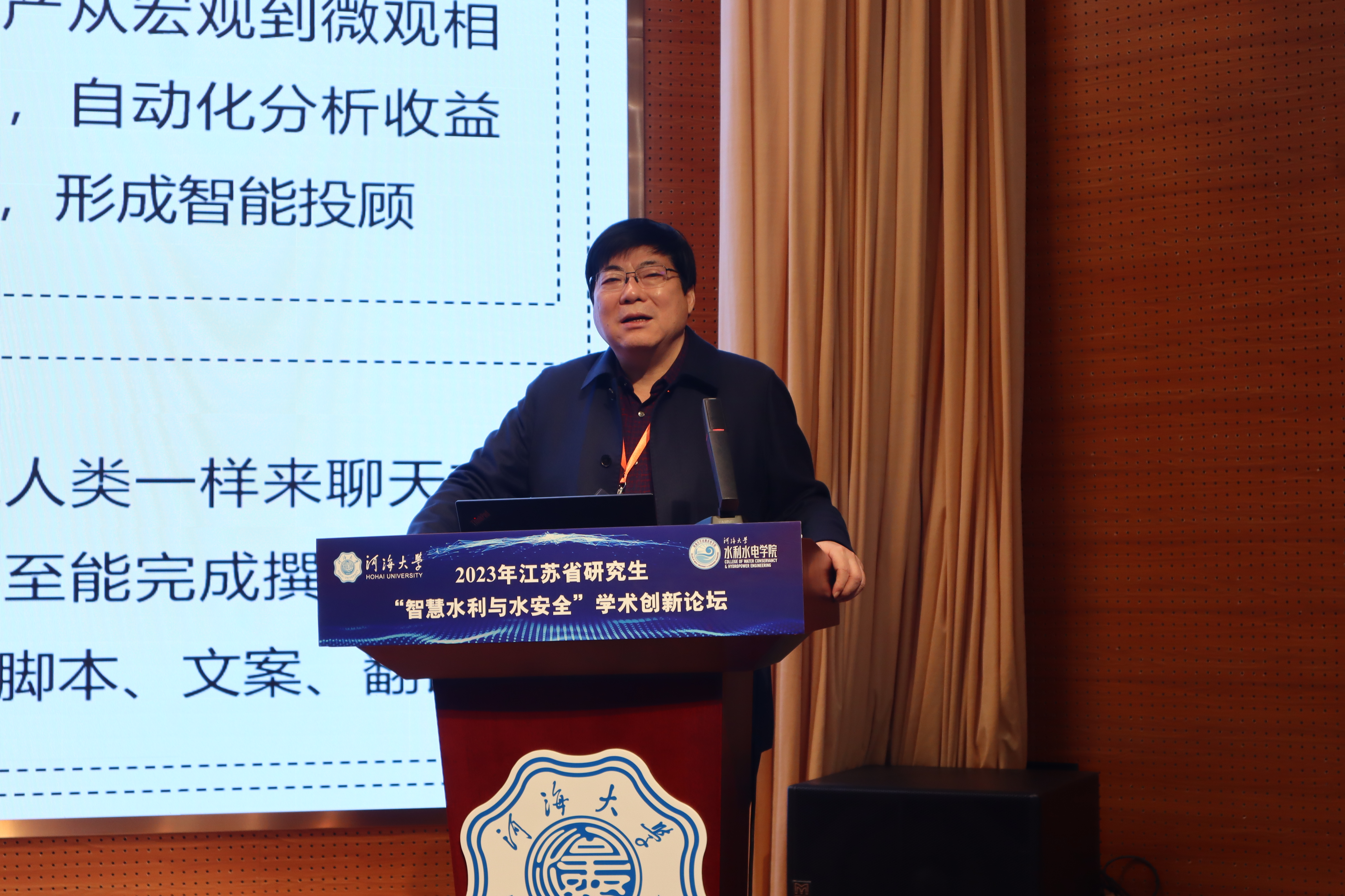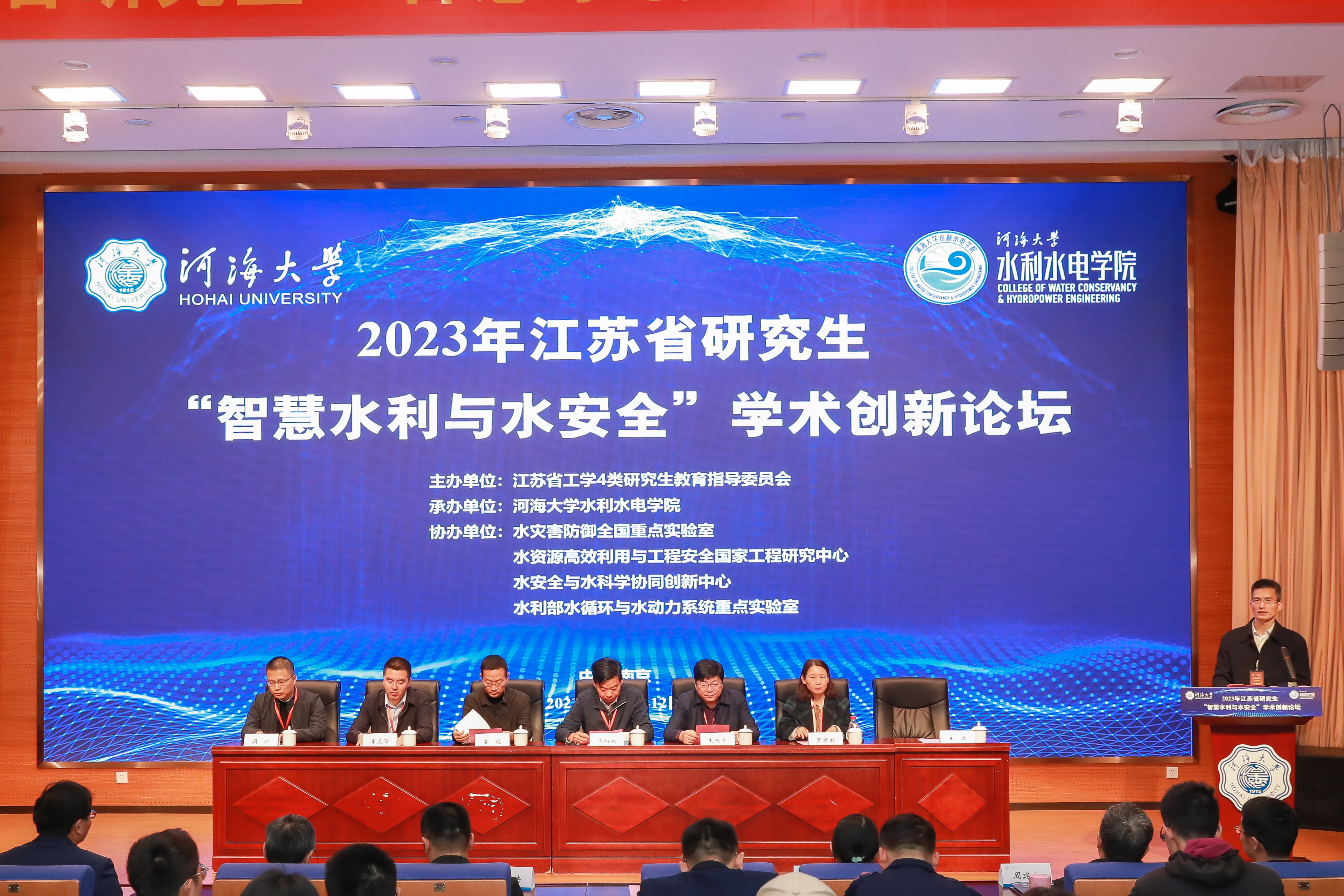 2023年江苏省研究生“智慧水利与水安全”学术创新论坛,由江苏省工学4类研究生教育指导委员会主办,成人抖音 承办,水灾害防御全国重点实验室、水资源高效利用与工程安全国家工程研究中心、水安全与水科学协同创新中心、水利部水循环与水动力系统重点实验室等单位共同协办。论坛旨在加强水利工程、土木工程、环境科学、农业工程、力学、计算机科学与技术等学科之间的学术思想交流,促进多学科研究思想和研究办法的交叉融合,推动广大研究生同学在水科学领域科研工作的开展。朱跃龙教授应邀做《数字孪生流域关键技术及其实现》报告,罗振敏教授应邀做《精神引领,科研育人,培养新时代安全应急领域高层次创新人才》报告,李炎隆教授应邀做《基于数据-物理联合驱动的面板堆石坝变形预测与控制》报告,闻昕教授应邀做《水风光储多能互补调度运行的探索与思考》报告。