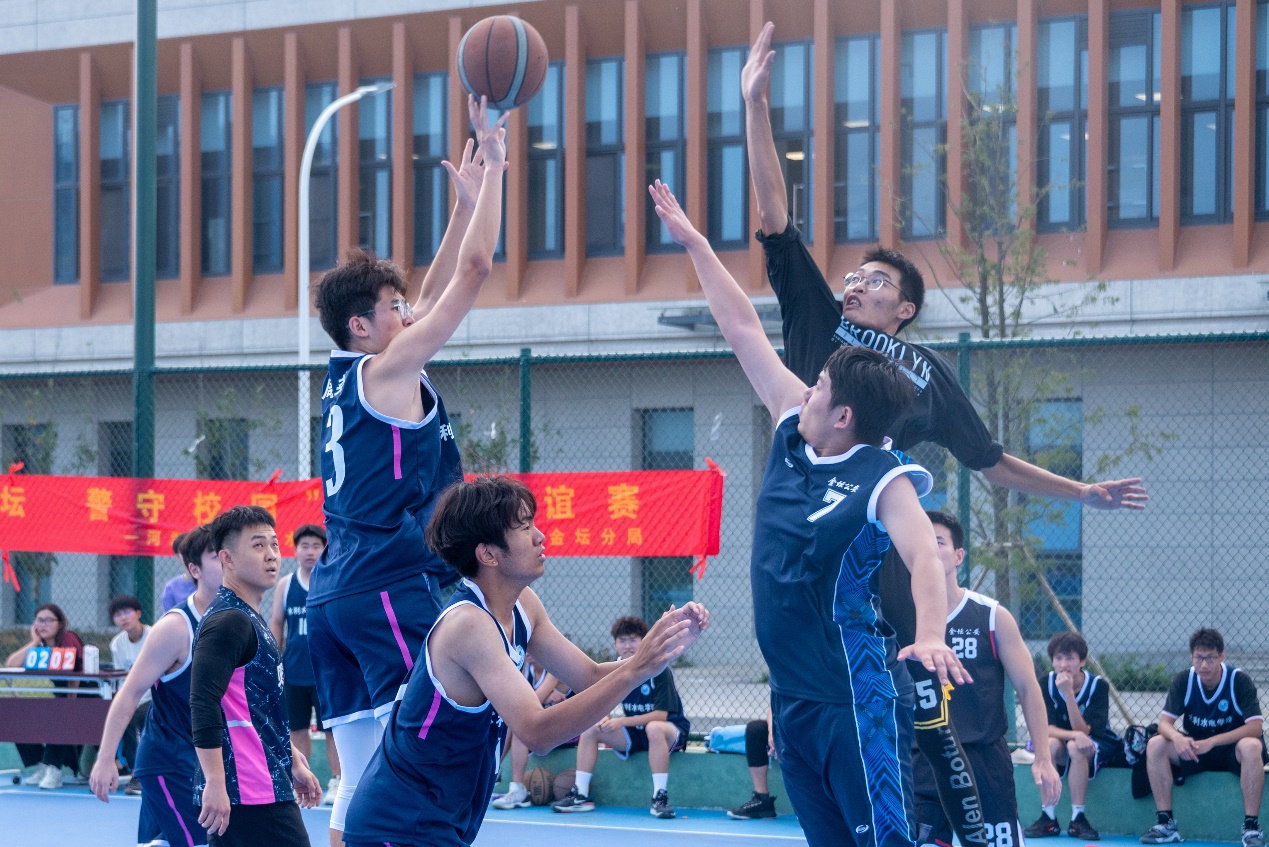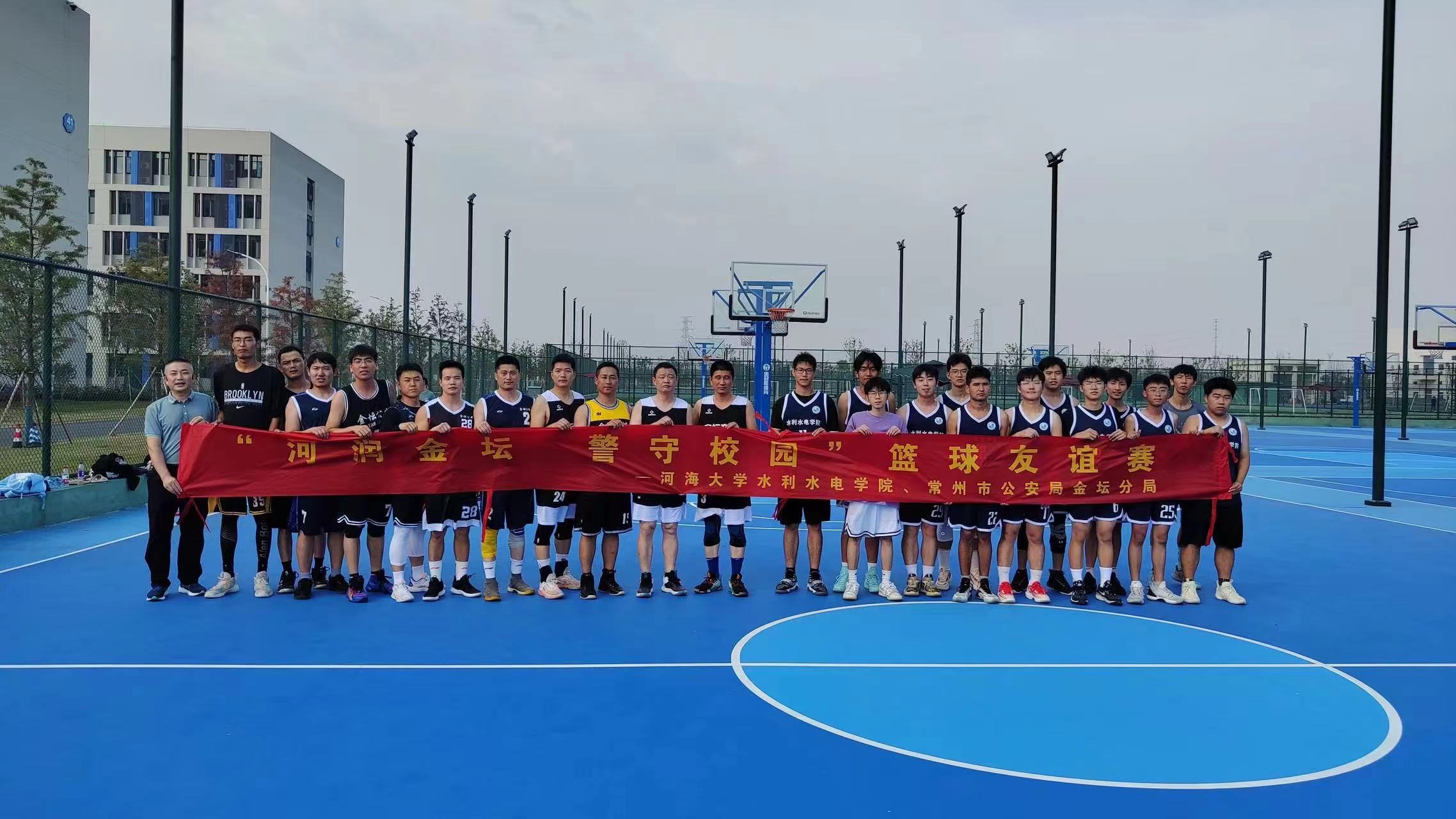 2023年11月5日,成人抖音 与常州市公安局金坛分局在常州校区共同举办“河润金坛,警守校园”篮球友谊赛。来自常州市公安局金坛分局的警官们与同学们在球场上以球会友,现场气氛热烈。
