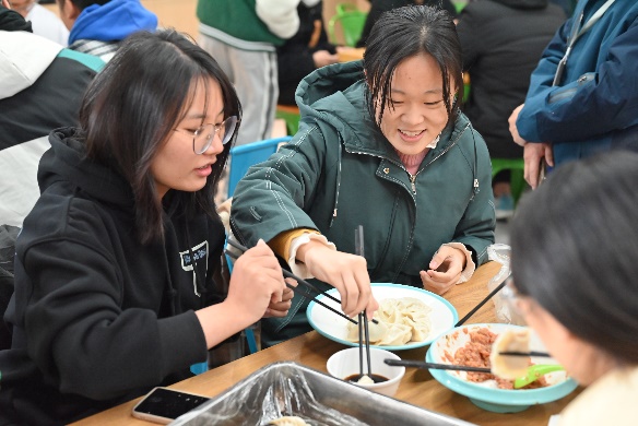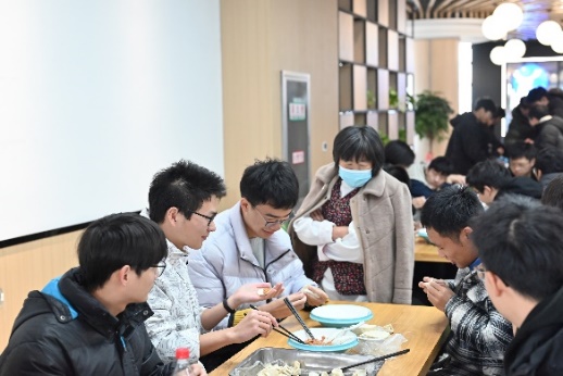 运用“巧手”的智慧,包好冬至的一顿饺子。在常州新校区北食堂人员的帮助下,本科生、研究生在现场积极参与,利用准备好的食材原料默契配合、分工合作,经过近两个小时的共同努力,“饺”出了自己最满意的答卷,“饺”出了自己最用心的成果,顺利完成了总计约1500个饺子。现场欢声笑语、其乐融融、温馨祥和,同学们也在丰富多样的包法中领略到不同地域的冬至文化。