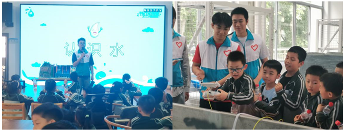志愿者通过ppt展示向小朋友分享李冰父子的治水故事,通过向小朋友科普水知识、提问答题、小组竞赛互动的方式,帮助小朋友更好地学习水利知识,加强他们对水利精神的理解和记忆,培养小朋友爱水护水之心。