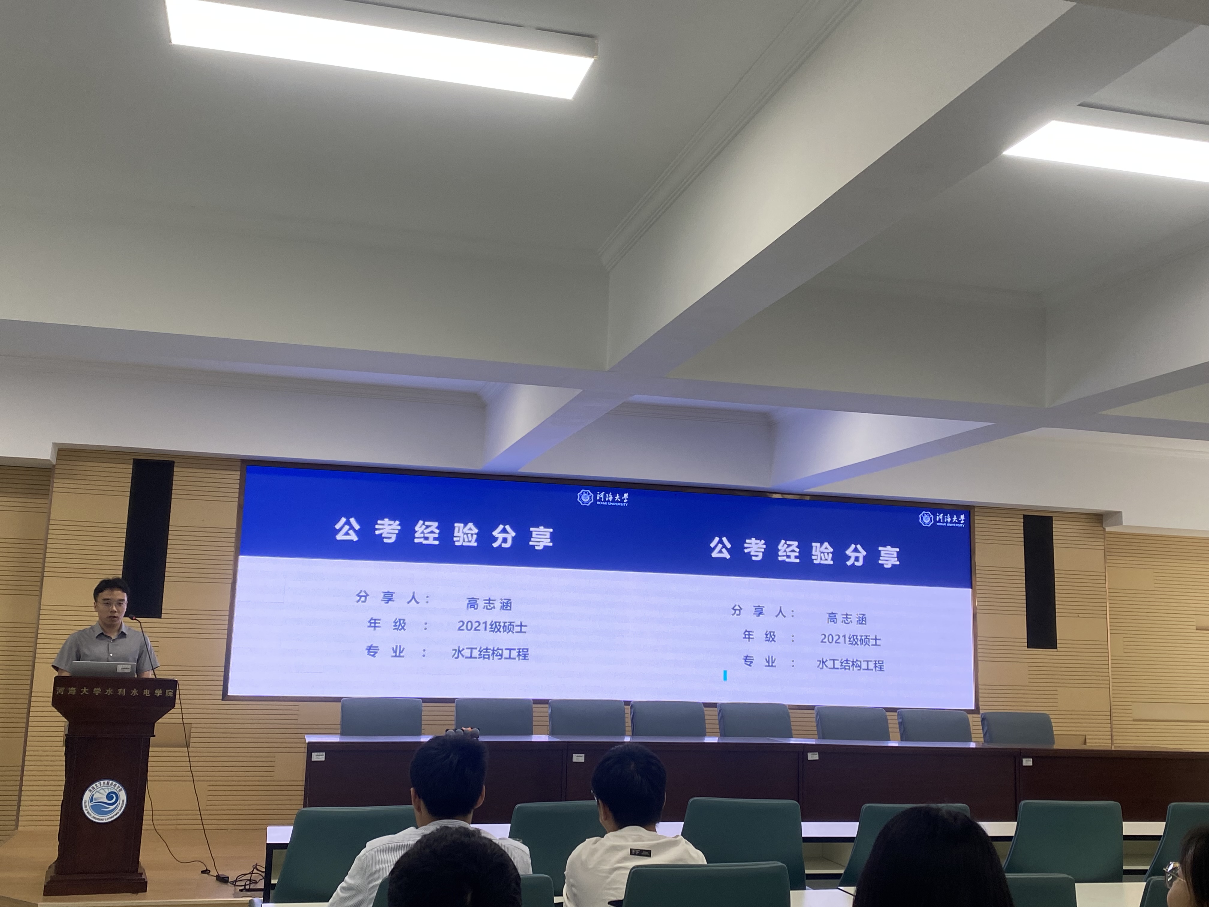 高志涵同学以“公考经验分享”为主题,向学弟学妹们介绍了国家公务员考情、岗位选择要点、各环节备考经验以及时间安排。系统地讲解了成人抖音 水利工程一级学科可以报考的优势岗位、公考笔试面试的复习技巧,并详细分析了研三一年毕业论文与公考复习的时间安排。高志涵同学建议有意考公的师弟师妹不因考公影响毕业论文相关工作,秋招和公考两手抓,合理规划时间,全身心投入学业与求职,并祝愿大家能够旗开得胜,一战成公。