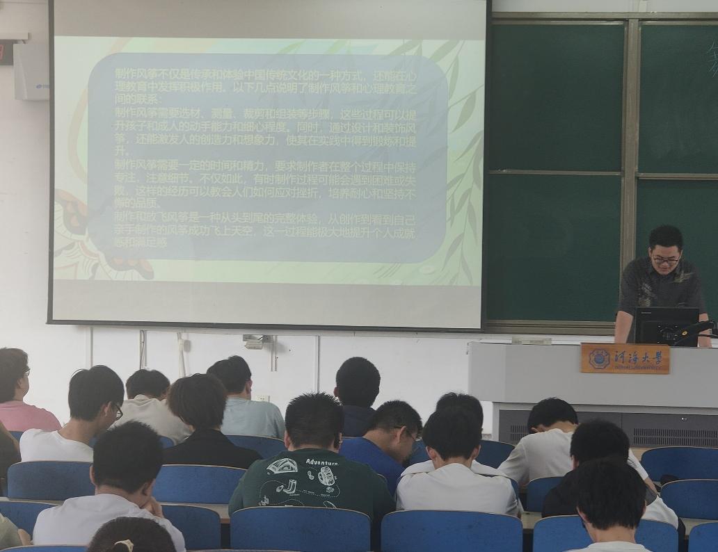 赵汉南介绍了风筝所寄托的传统文化底蕴,向同学们介绍了风筝的历史源头和一般组成及风筝制作在美术思维锻炼和劳动习惯培养上的双重作用,让同学们从理论上感知风筝制作与心理健康教育的密切联动。