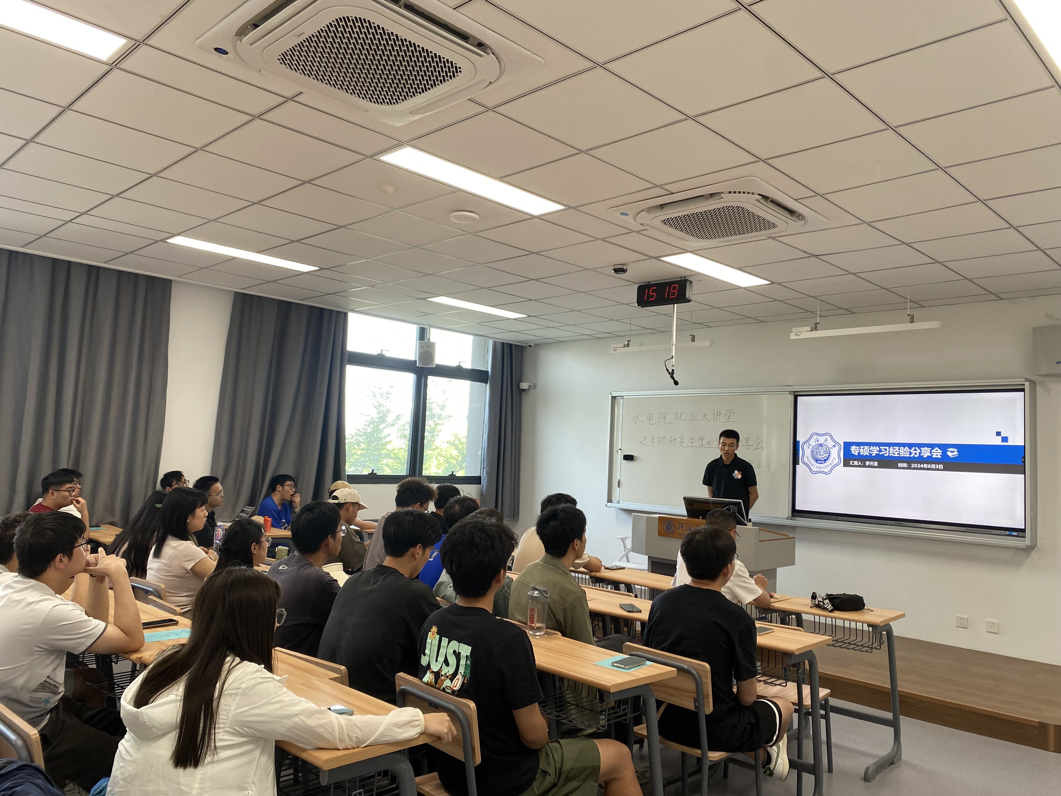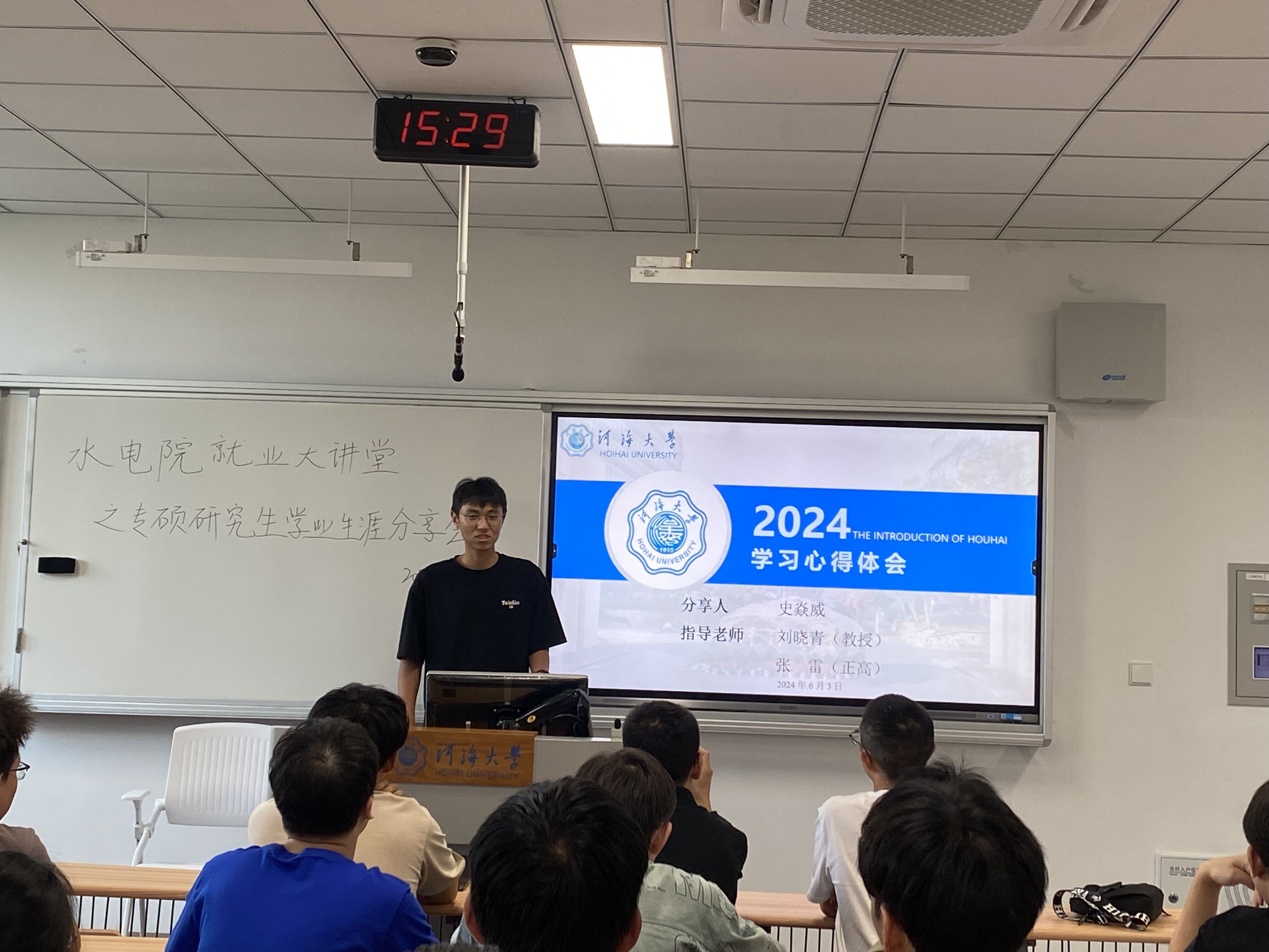 学院2023级专硕研究生即将前往研究生联培基地顶岗实习,为进一步引导同学们合理规划学习生涯,6月3日,学院在金坛校区举办水电就业大讲堂之专硕研究生学习生涯分享会。本次活动邀请了学院2021级土木水利专业罗天富、史焱威和王卫3位研究生师兄面向学院2023级土木水利专业研究生做分享,活动由辅导员陈辰老师主持。